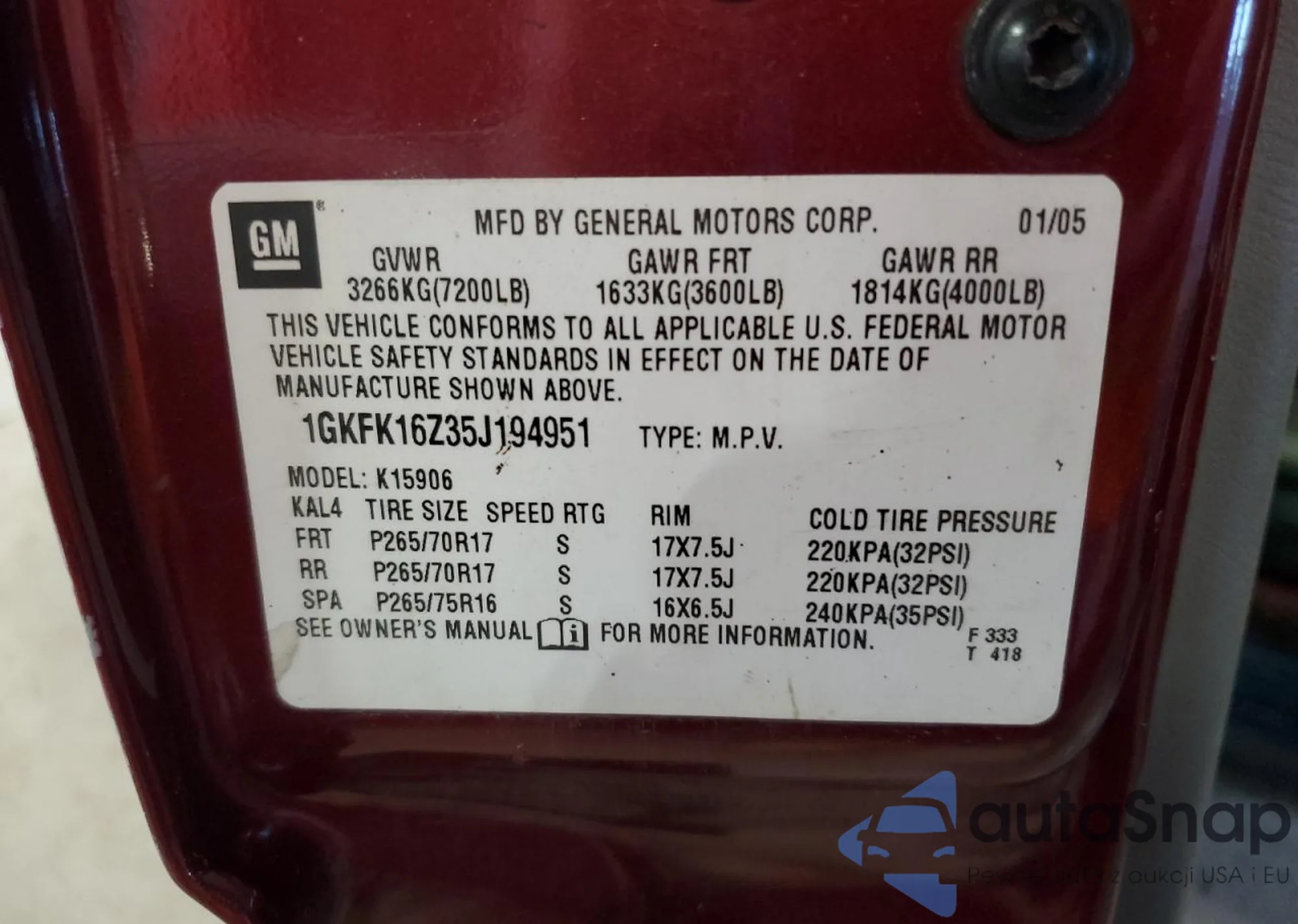VIN: 1GKFK16Z35J194951