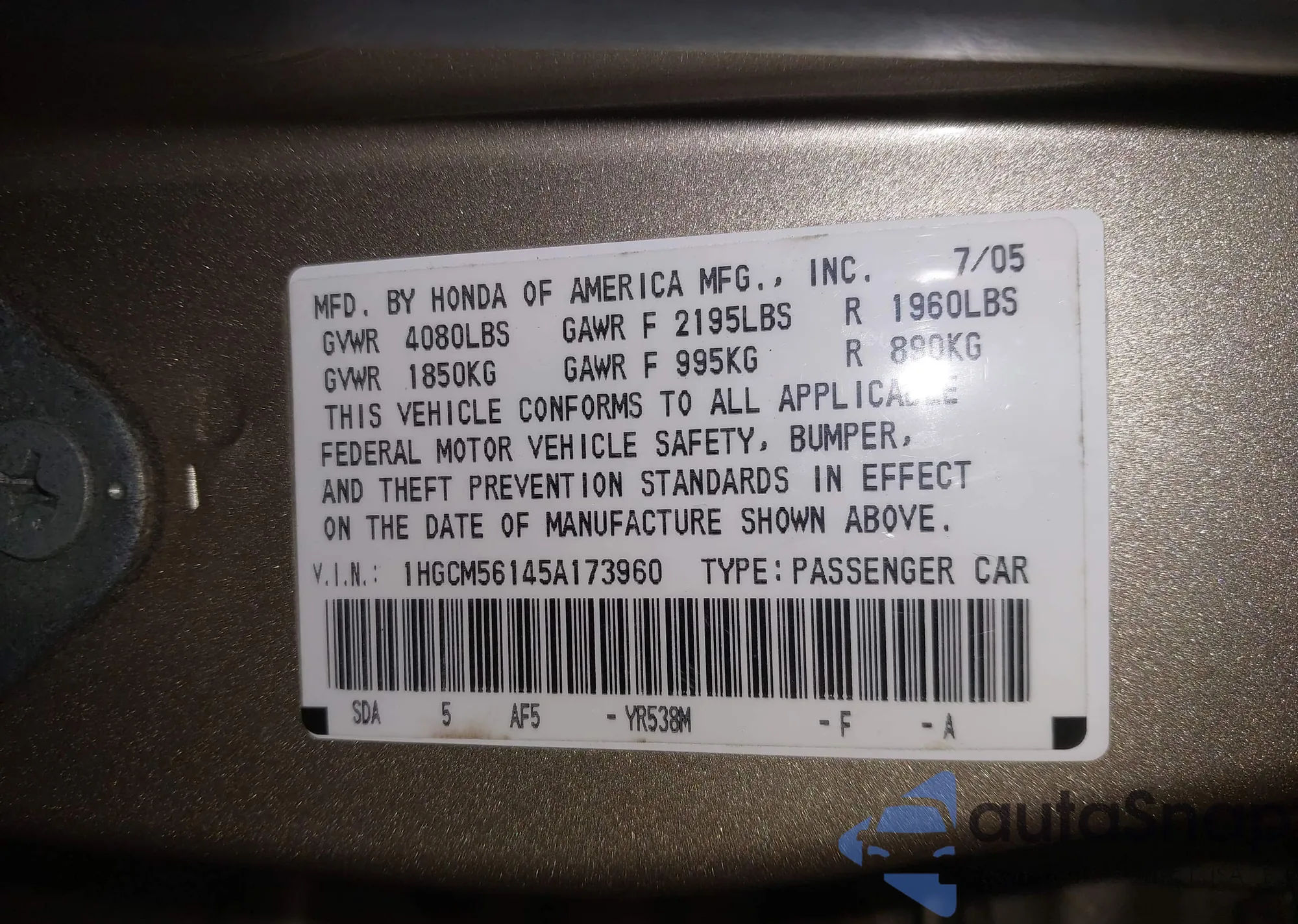 VIN: 1HGCM56145A173960