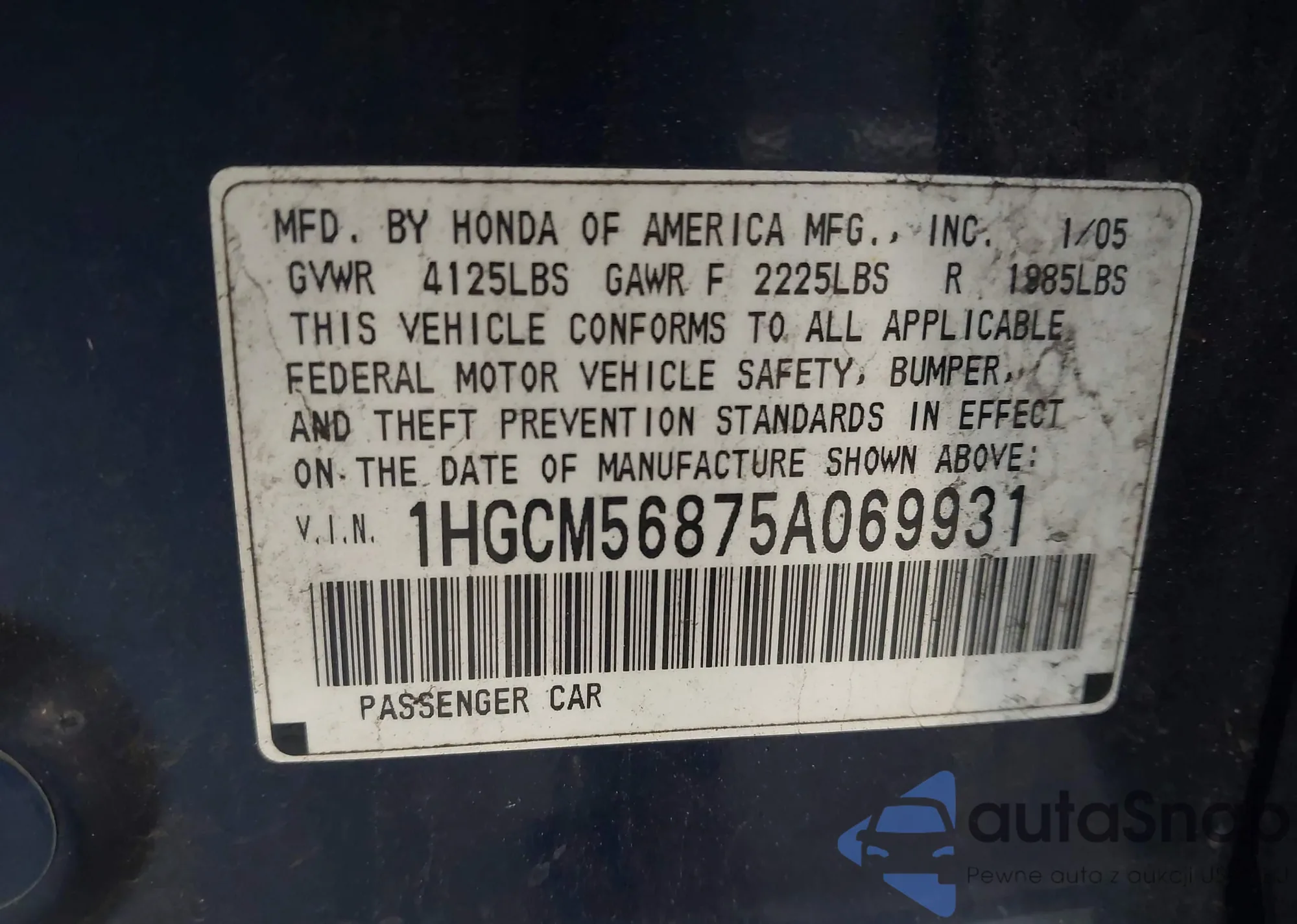 The car Honda Accord 2005 (VIN 1HGCM56875A069931) has not been auctioned before. The documents are clean, and the mileage matches or is below the market average. Sold by an insurance company – we recommend purchase. Delivery to the port will take approx. 6–8 weeks.
