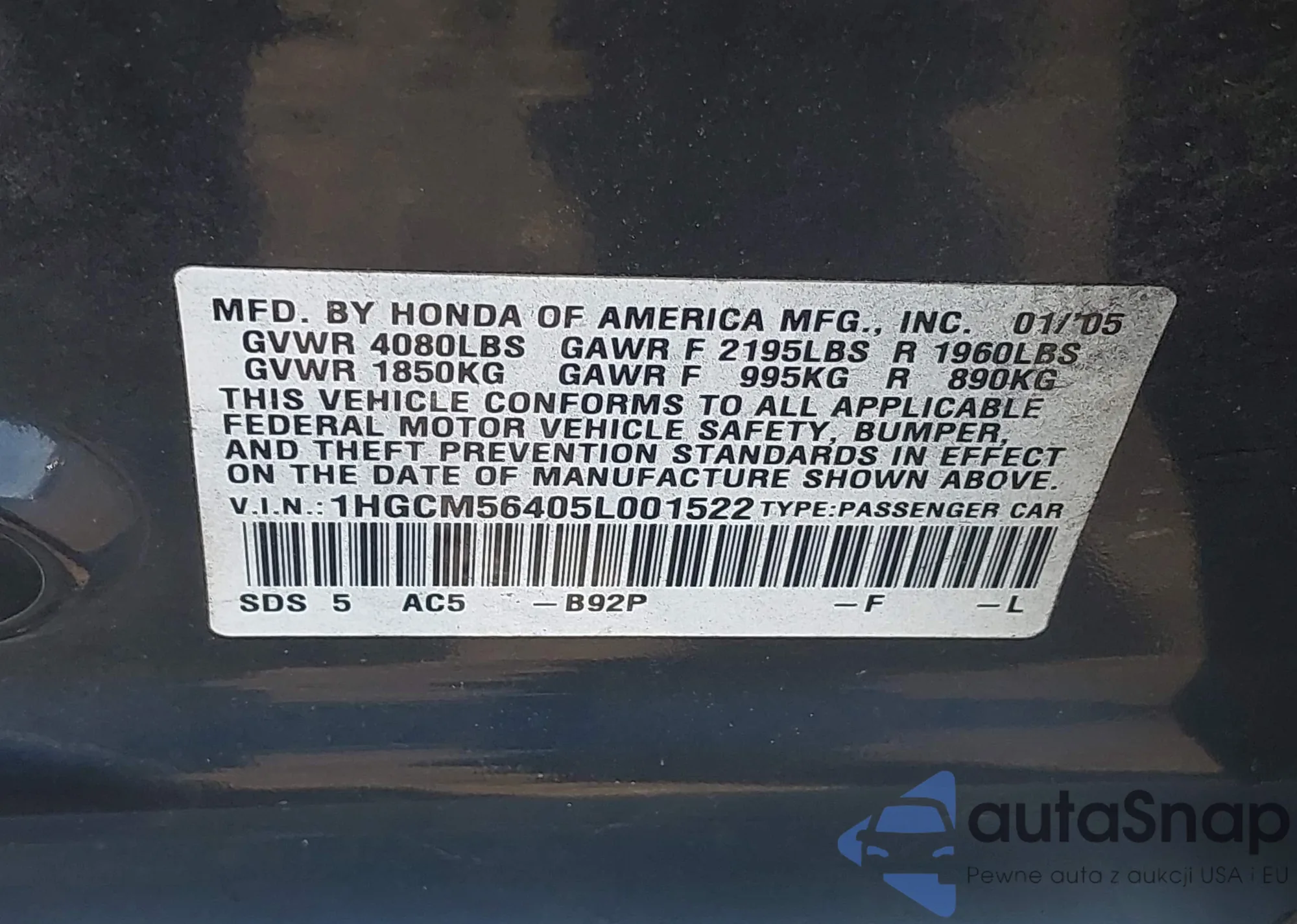 VIN: 1HGCM56405L001522