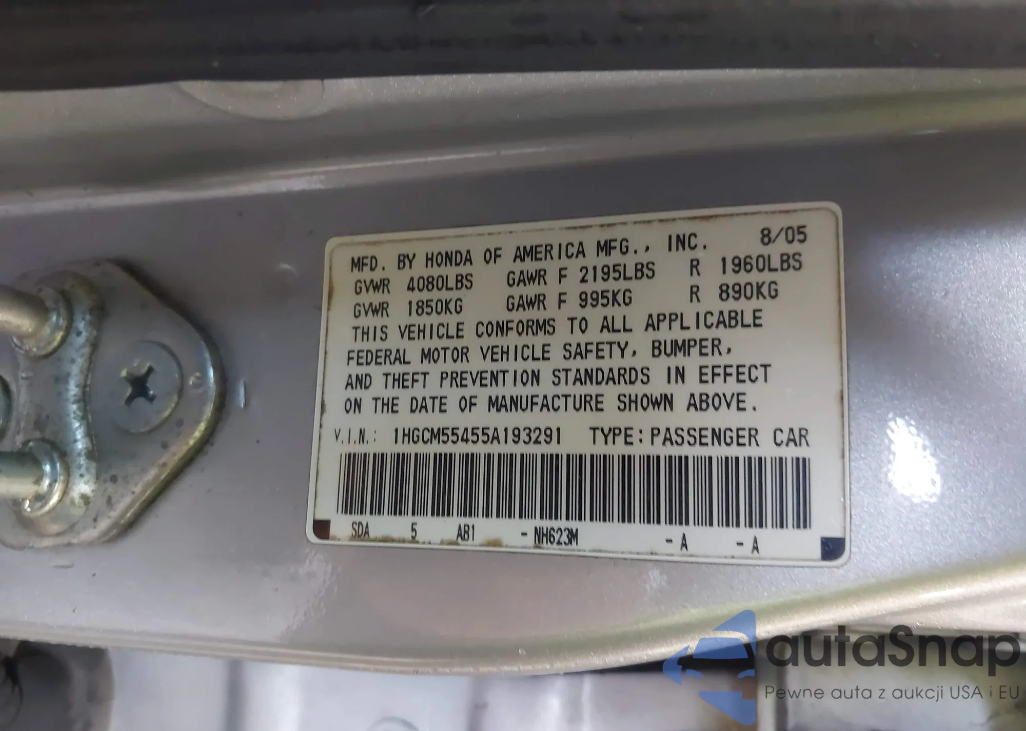 VIN: 1HGCM55455A193291