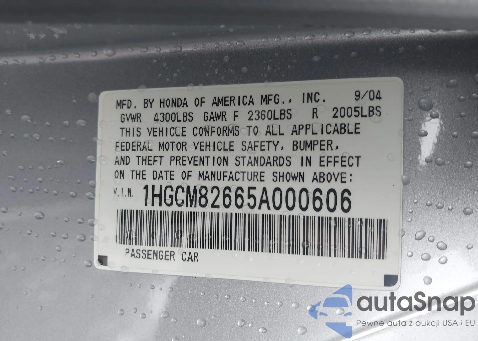 VIN: 1HGCM82665A000606