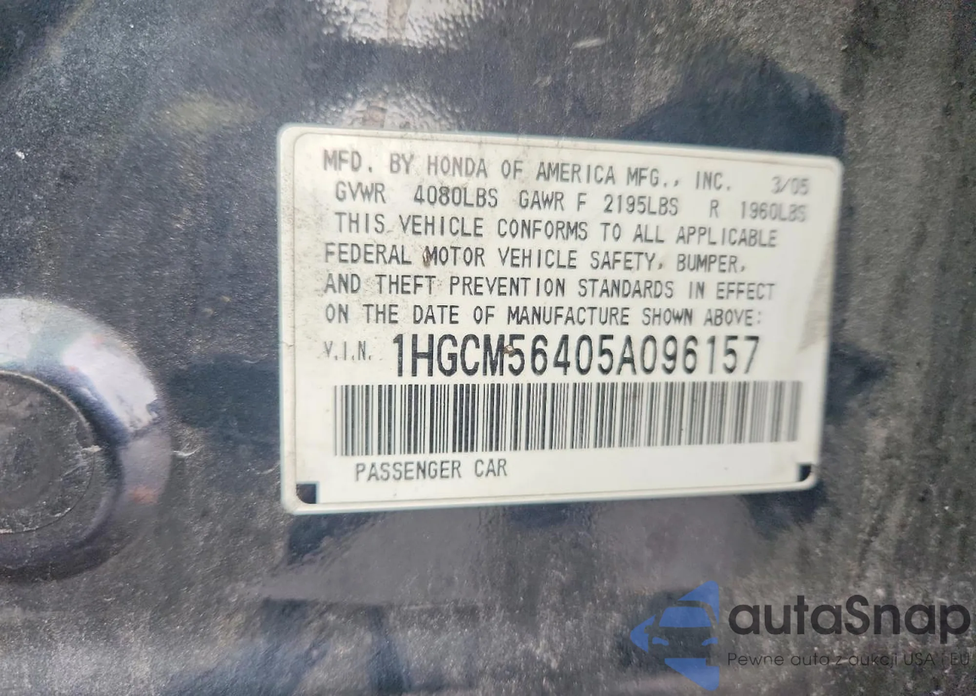 The car Honda Accord 2005 (VIN 1HGCM56405A096157) is sold by an unverified seller. We recommend checking the Carfax report and confirming registration possibilities before purchase.