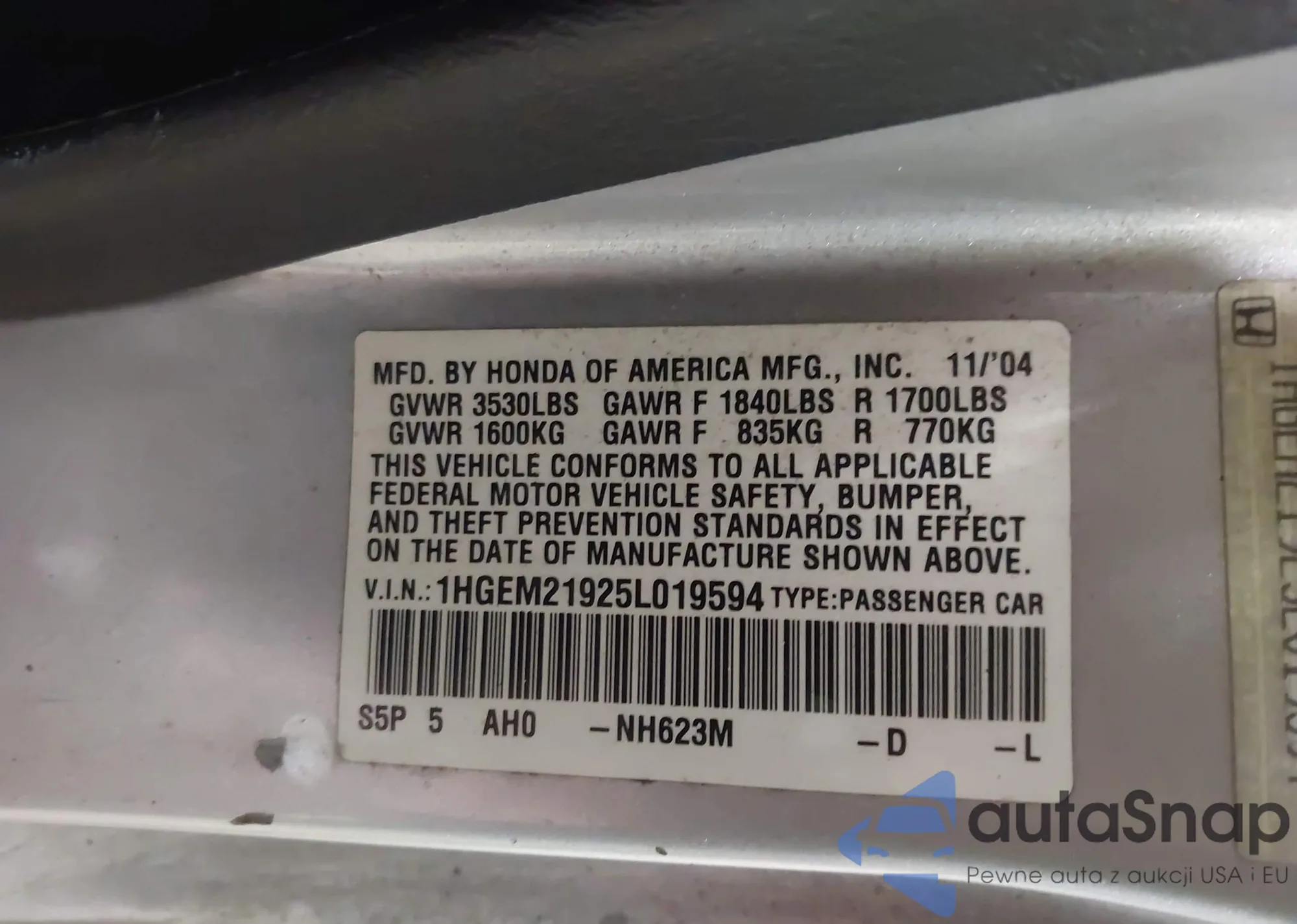 VIN: 1HGEM21925L019594