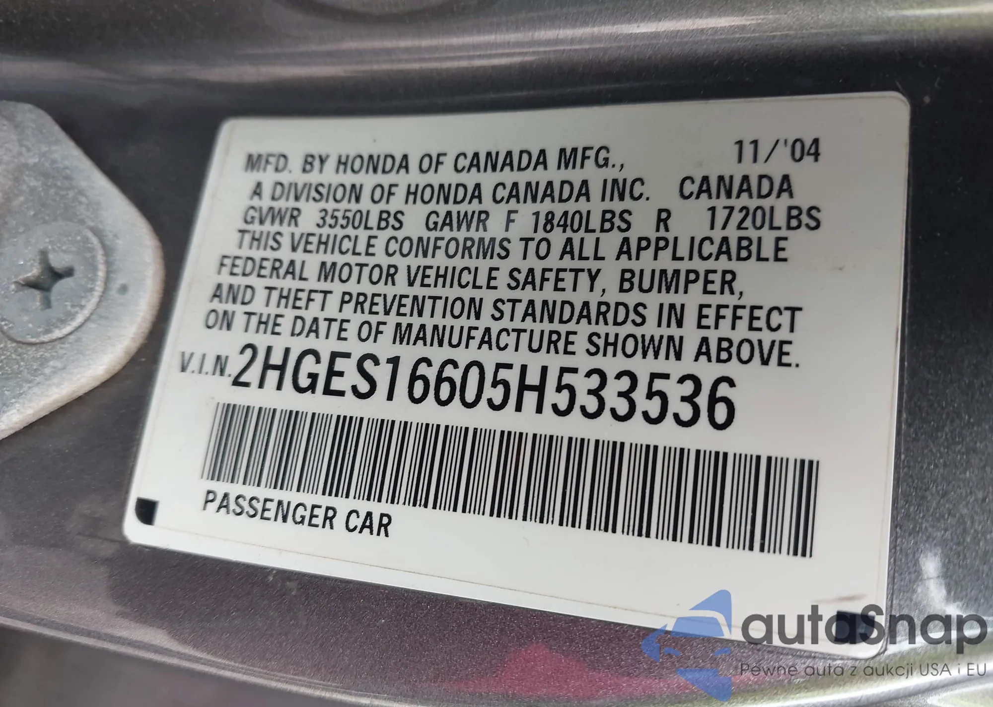 VIN: 2HGES16605H533536