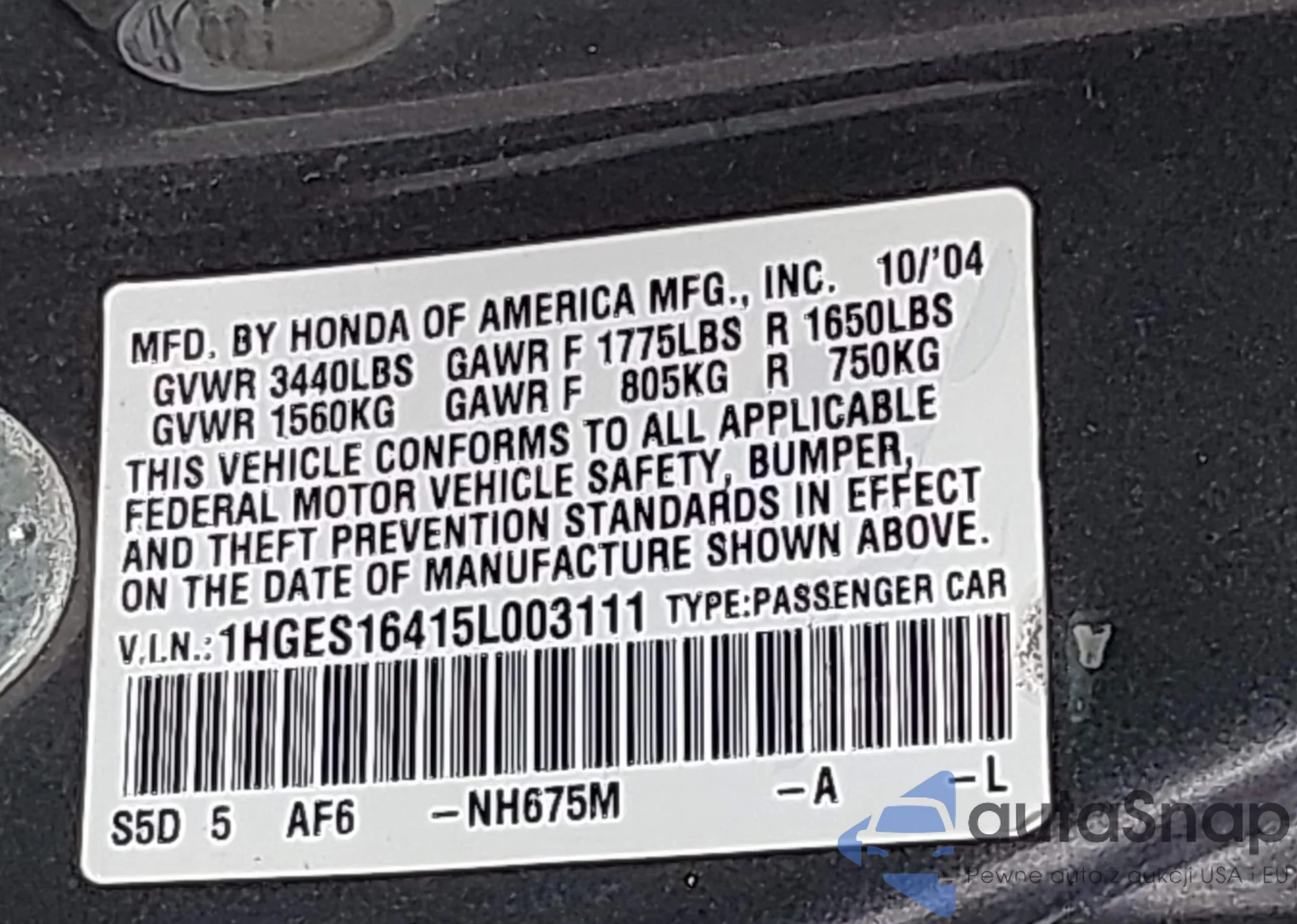VIN: 1HGES16415L003111