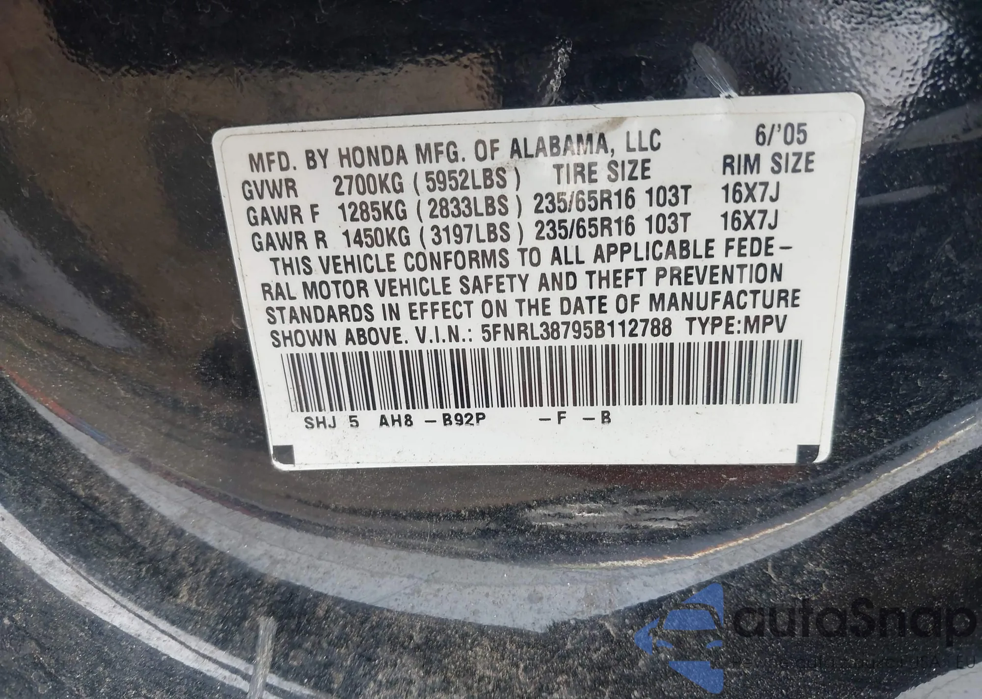 VIN: 5FNRL38795B112788