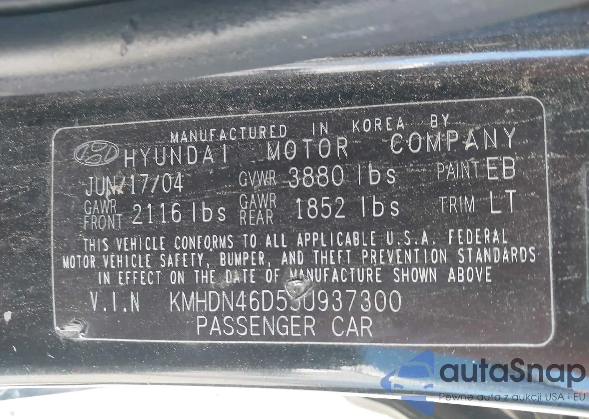 The car Hyundai Elantra 2005 (VIN KMHDN46D55U937300) is sold by an unverified seller. We recommend checking the Carfax report and confirming registration possibilities before purchase.