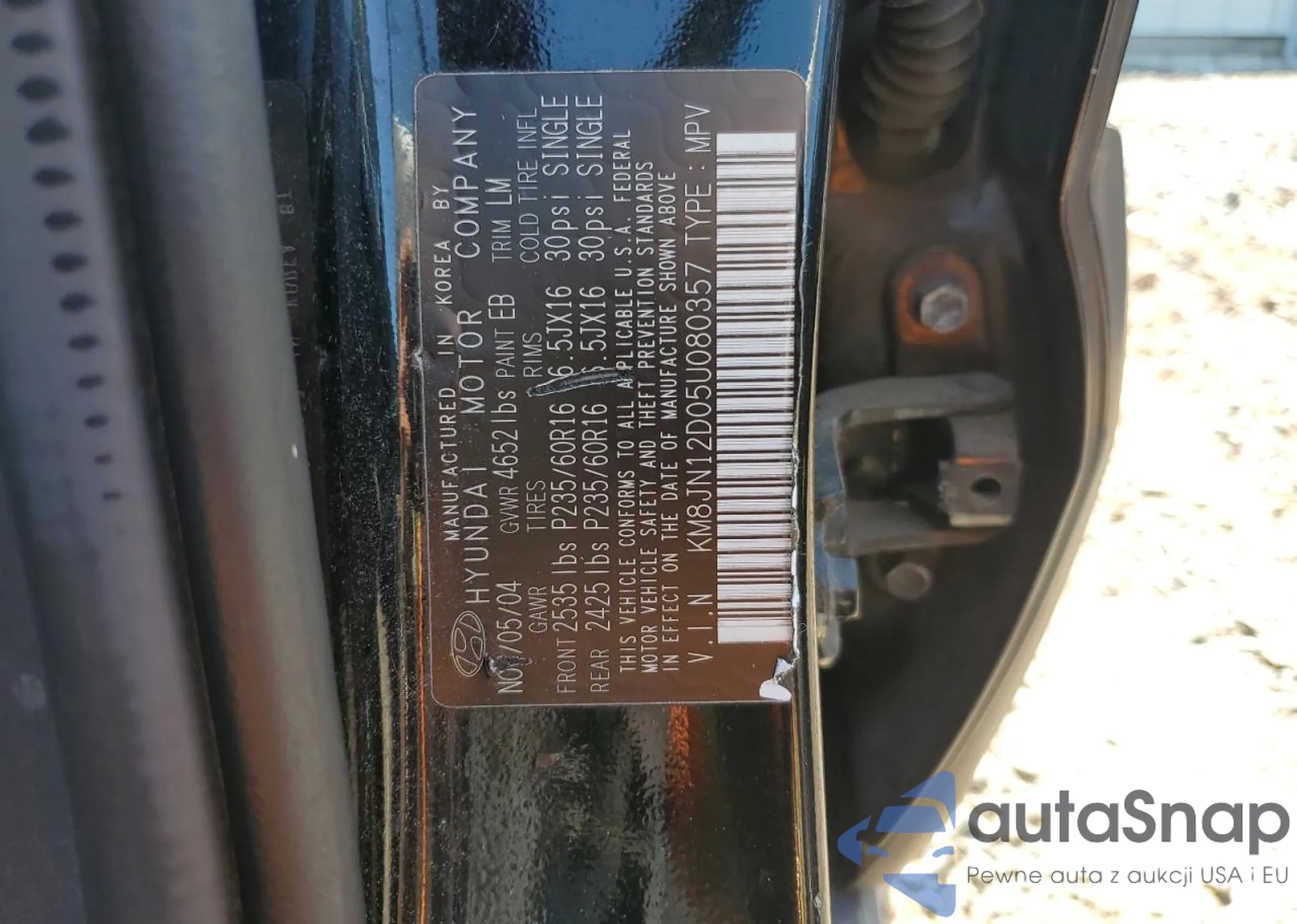 VIN: KM8JN12D05U080357
