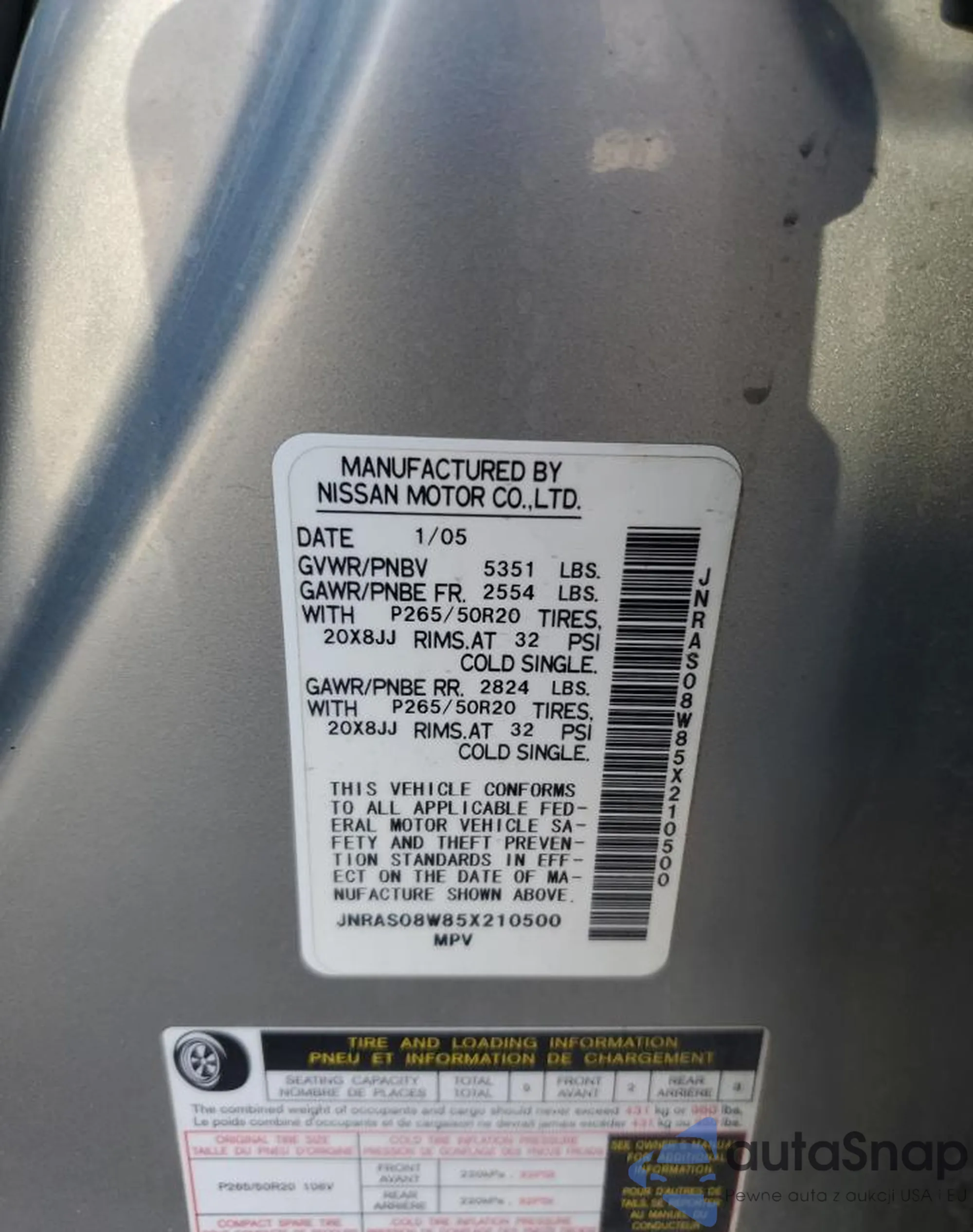 VIN: JNRAS08W85X210500