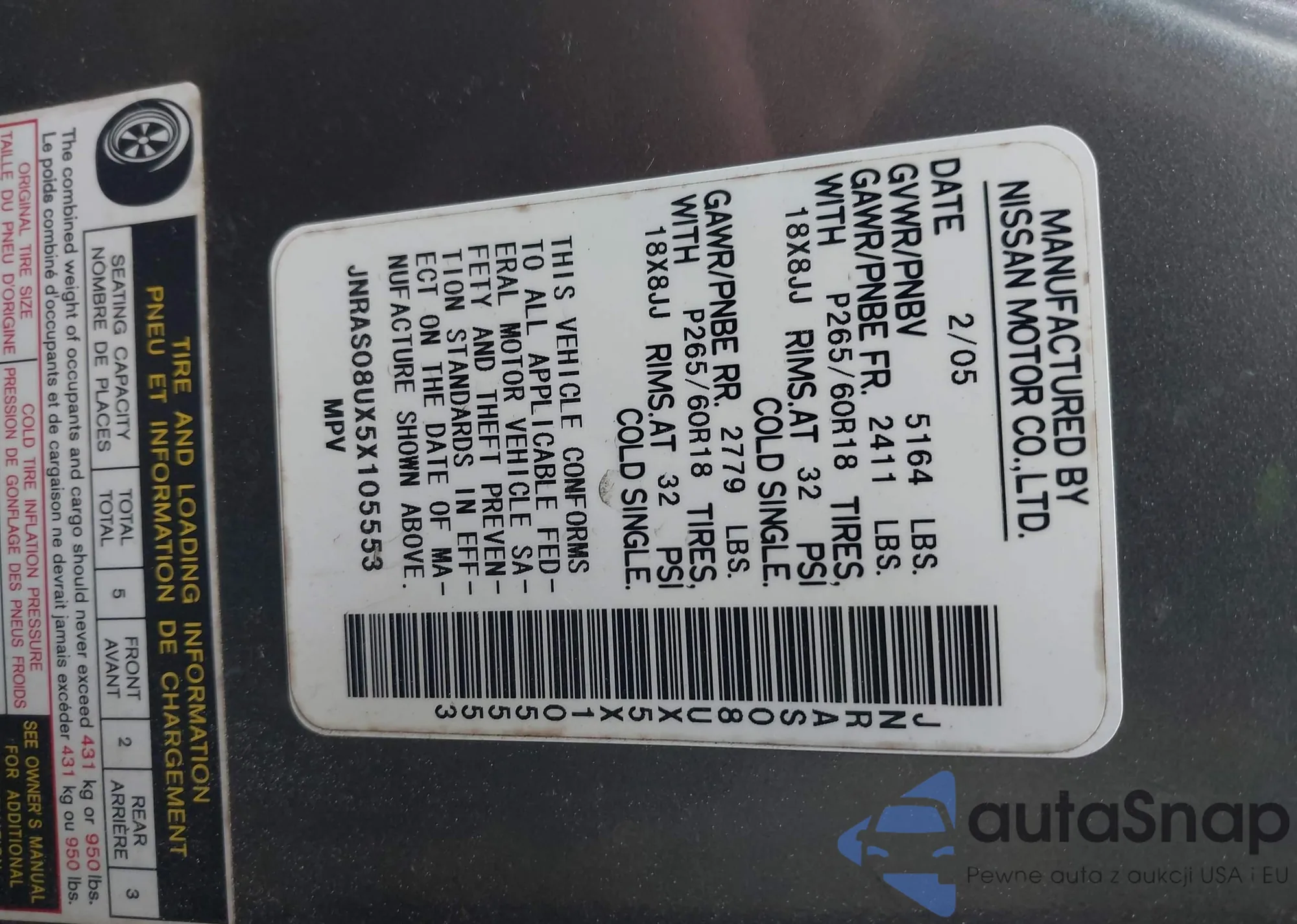 VIN: JNRAS08UX5X105553