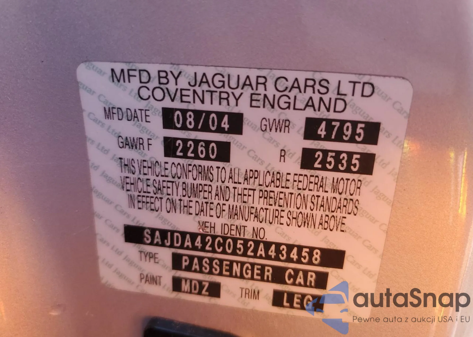 VIN: SAJDA42C052A43458