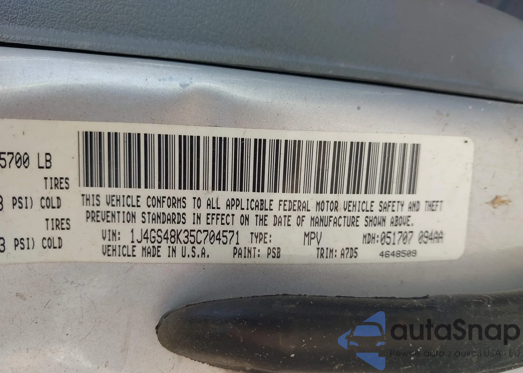 VIN: 1J4GS48K35C704571