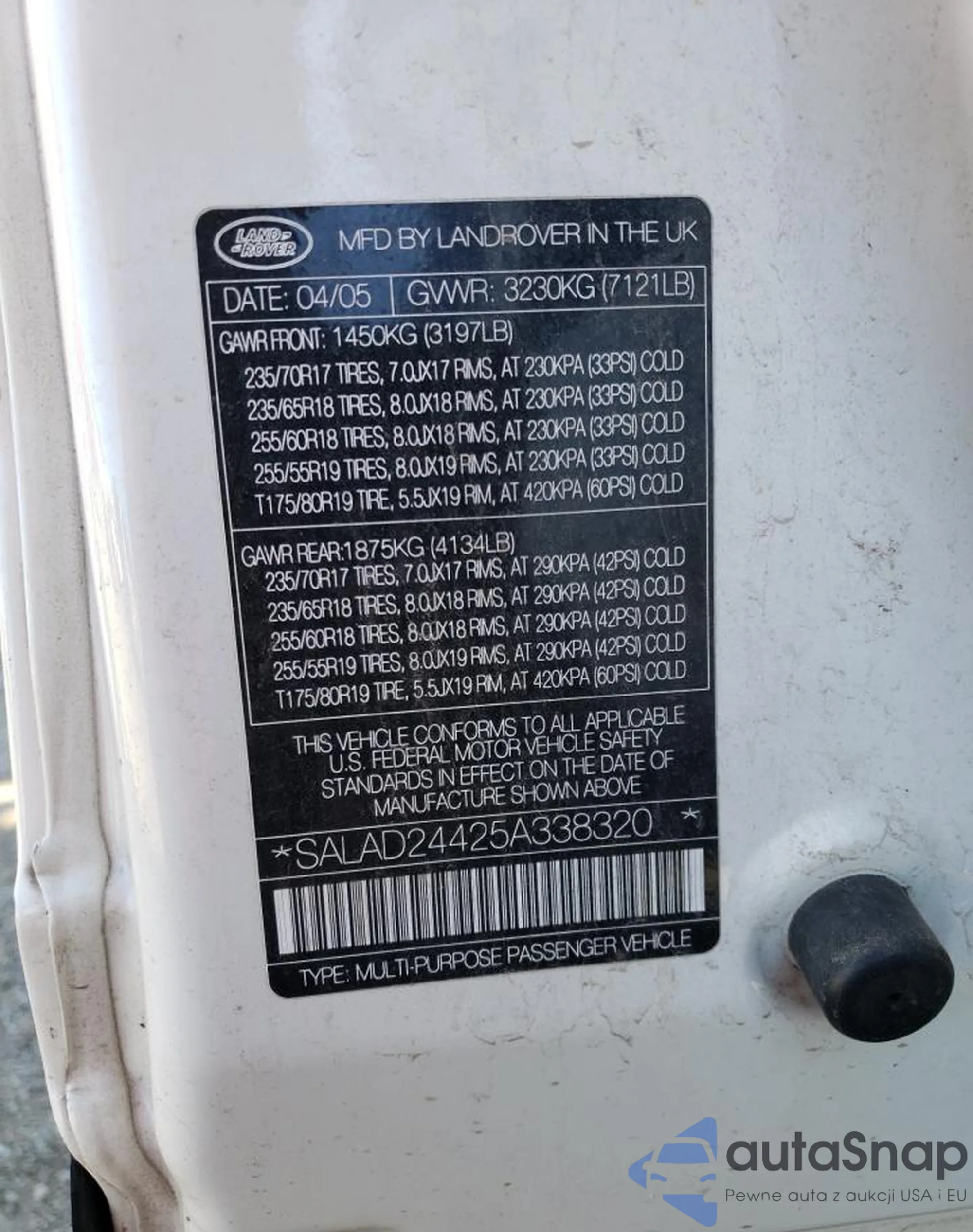VIN: SALAD24425A338320
