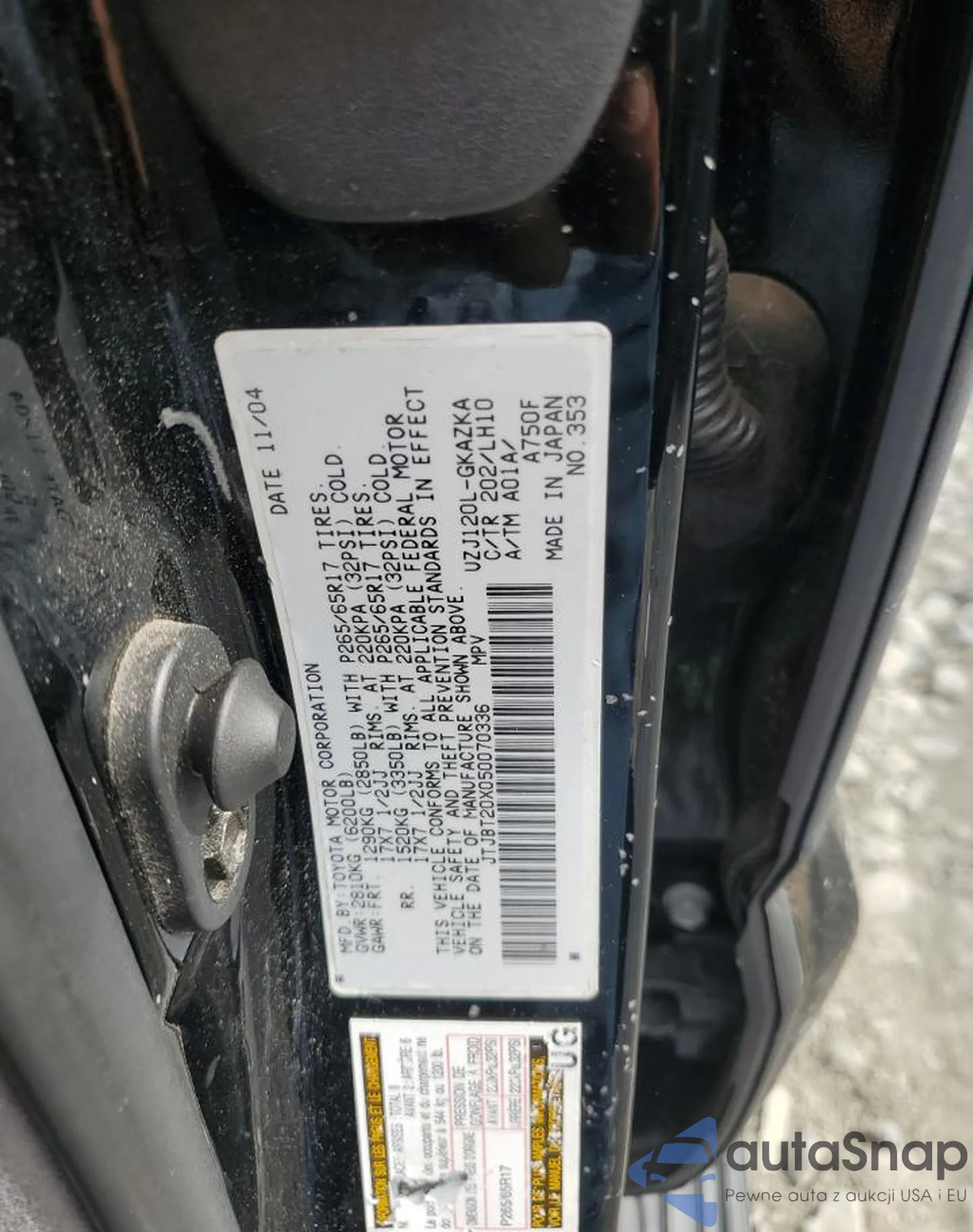 The car Lexus GX 2005 (VIN JTJBT20X050070336) has already been auctioned 0 times or is sold by an unverified seller. We recommend checking the Carfax report and confirming registration possibilities before purchase.