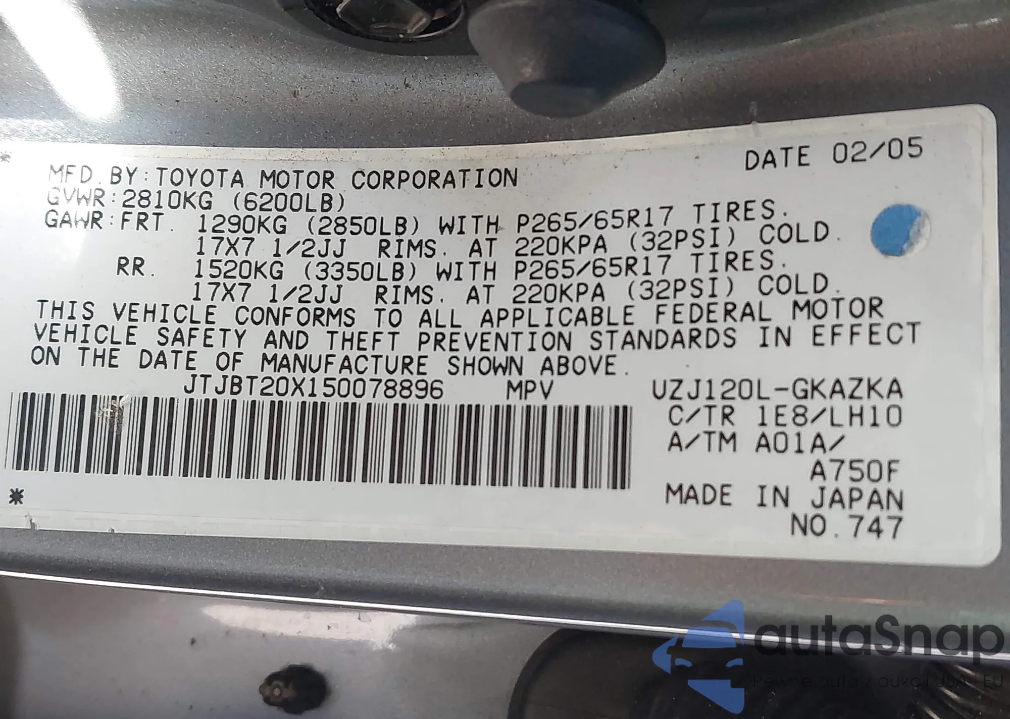 • VIN: JTJBT20X150078896