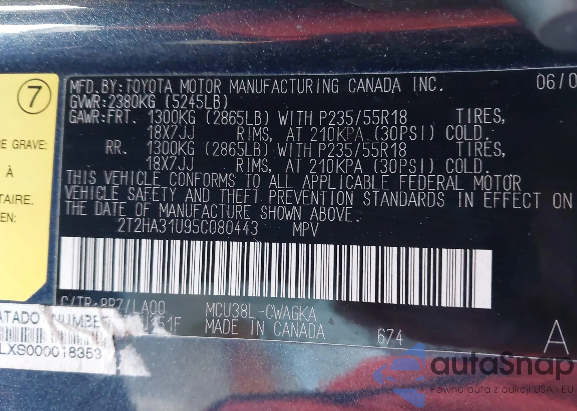 2T2HA31U95C080443 IAAI