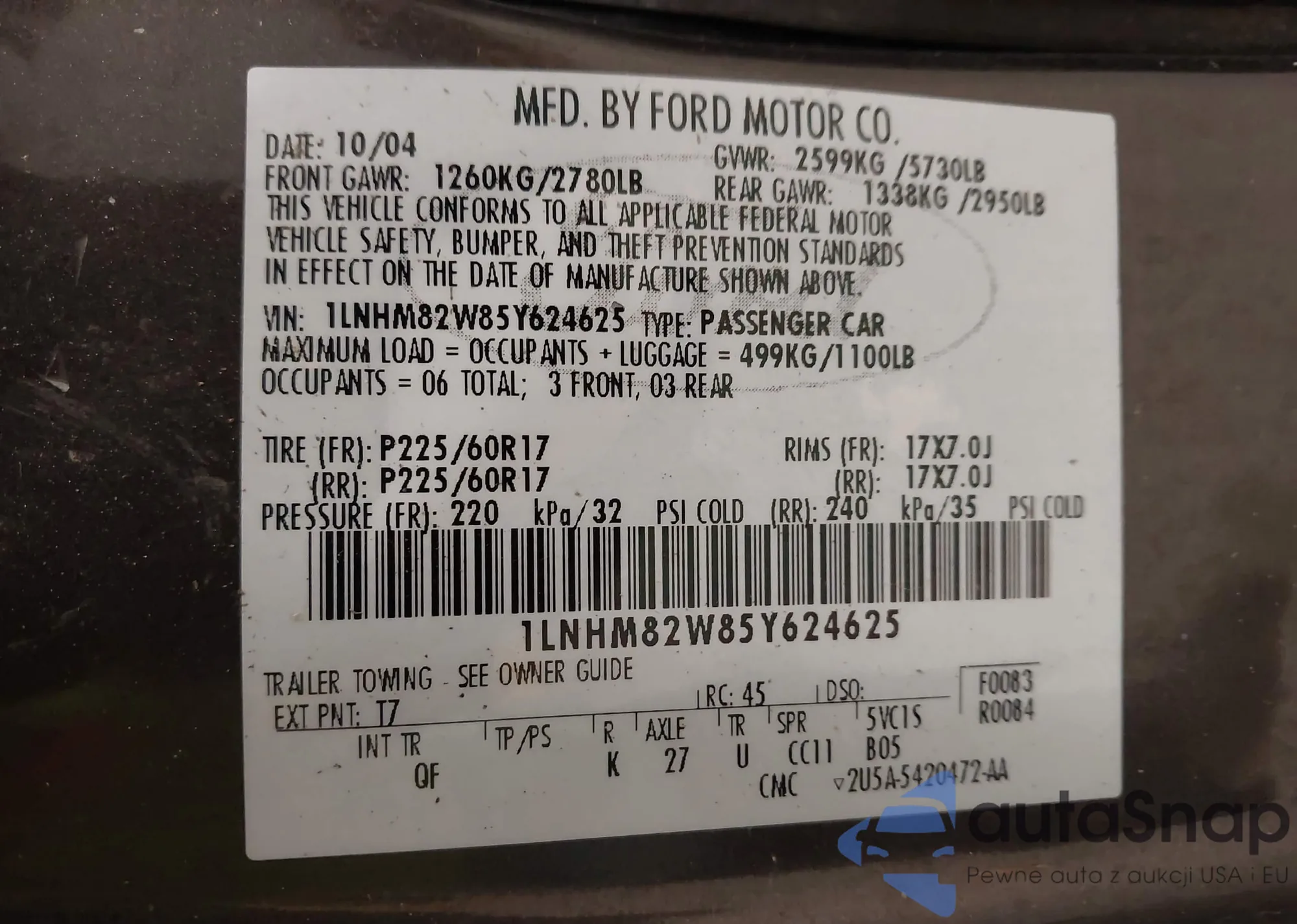 VIN: 1LNHM82W85Y624625