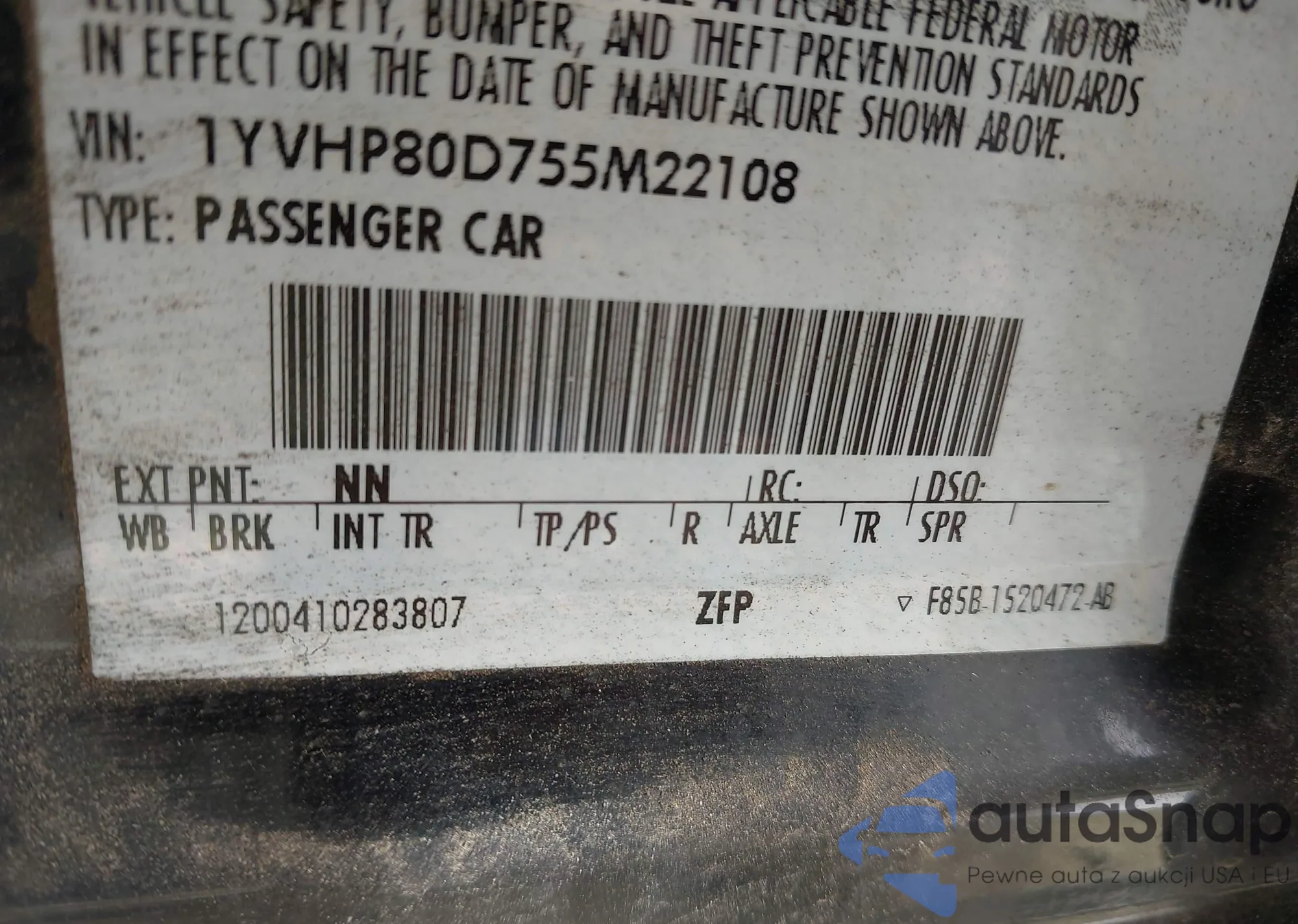 VIN: 1YVHP80D755M22108
