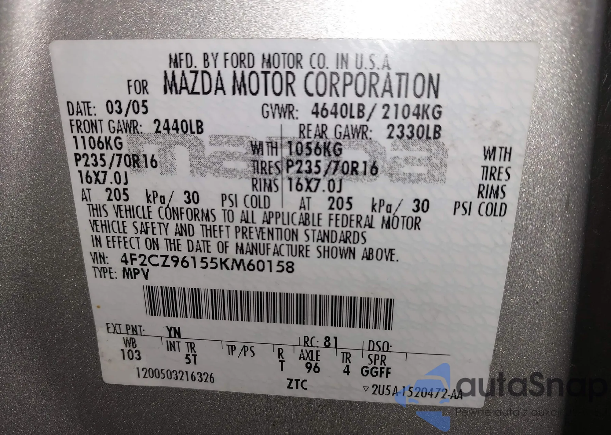 • Make: 2005 Mazda Tribute S