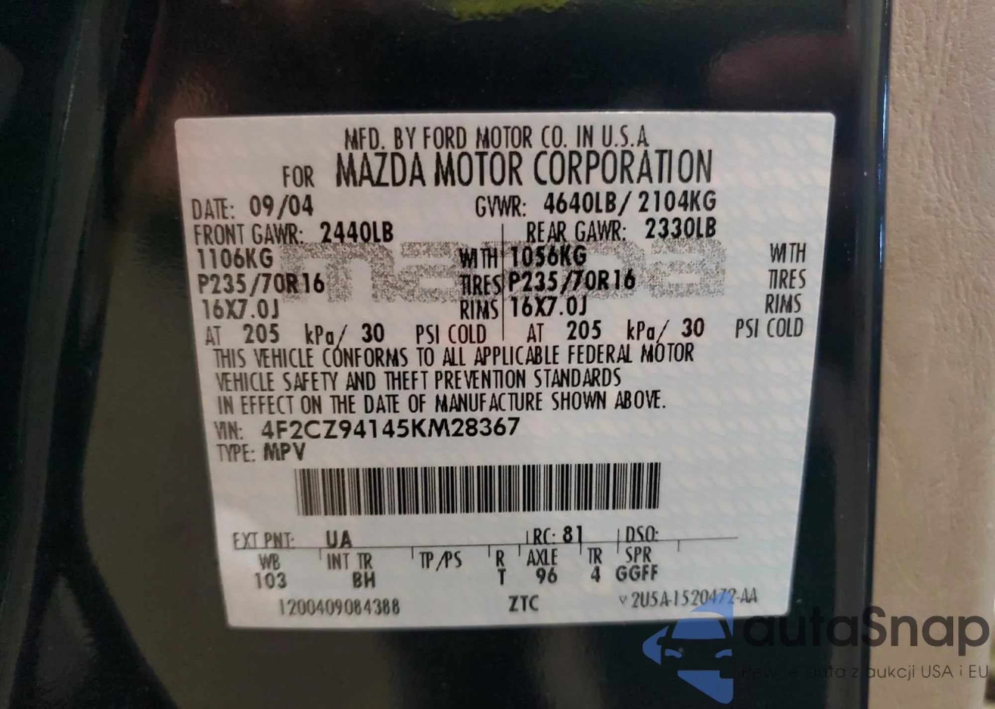 The car Mazda Tribute 2005 (VIN 4F2CZ94145KM28367) is sold by an unverified seller. We recommend checking the Carfax report and confirming registration possibilities before purchase.