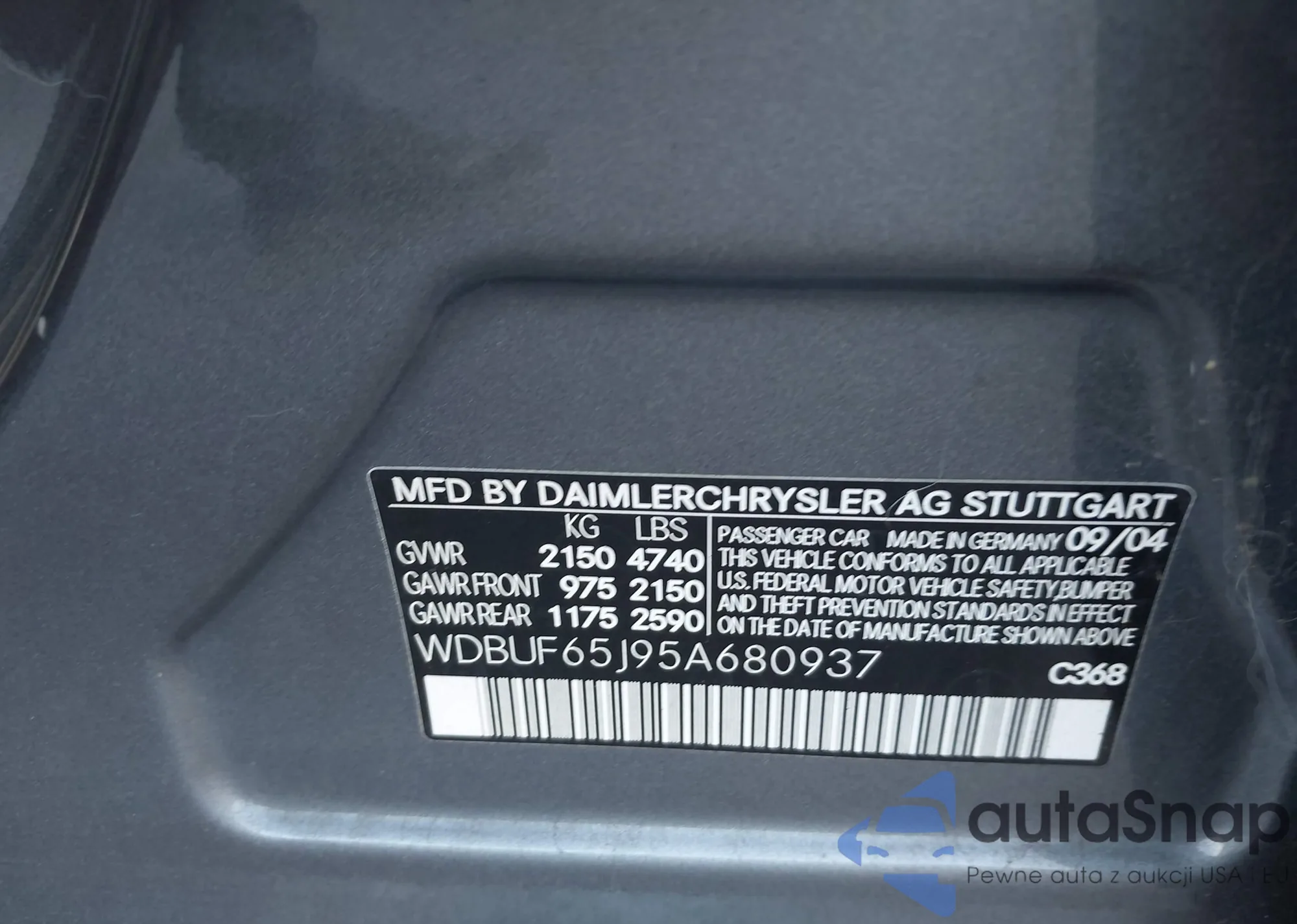 VIN: WDBUF65J95A680937