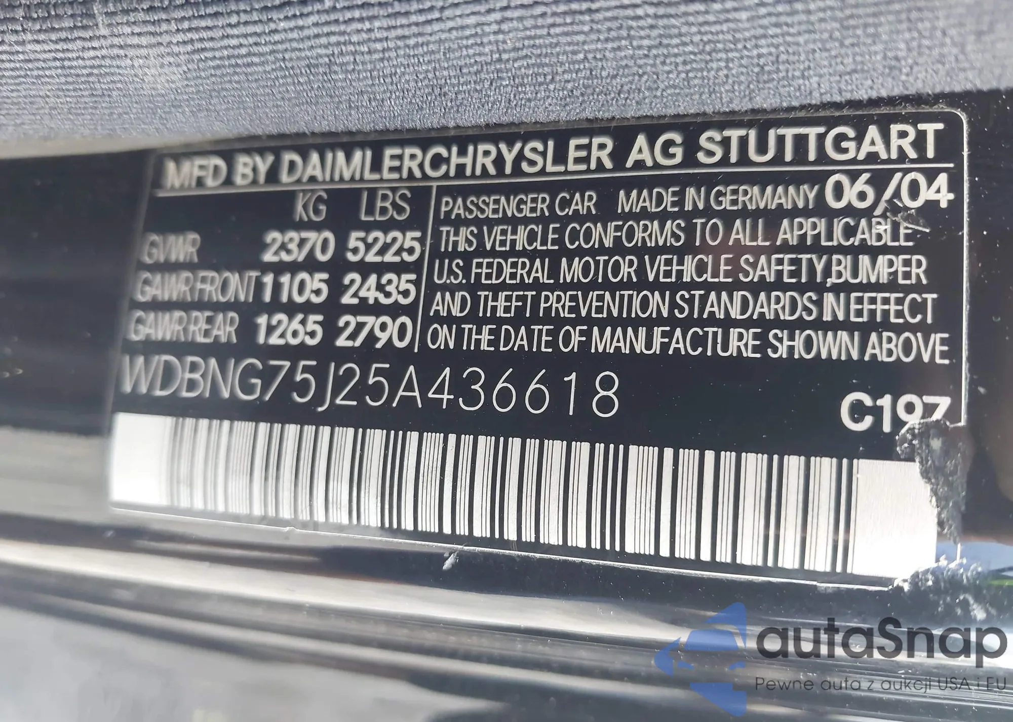 VIN: WDBNG75J25A436618