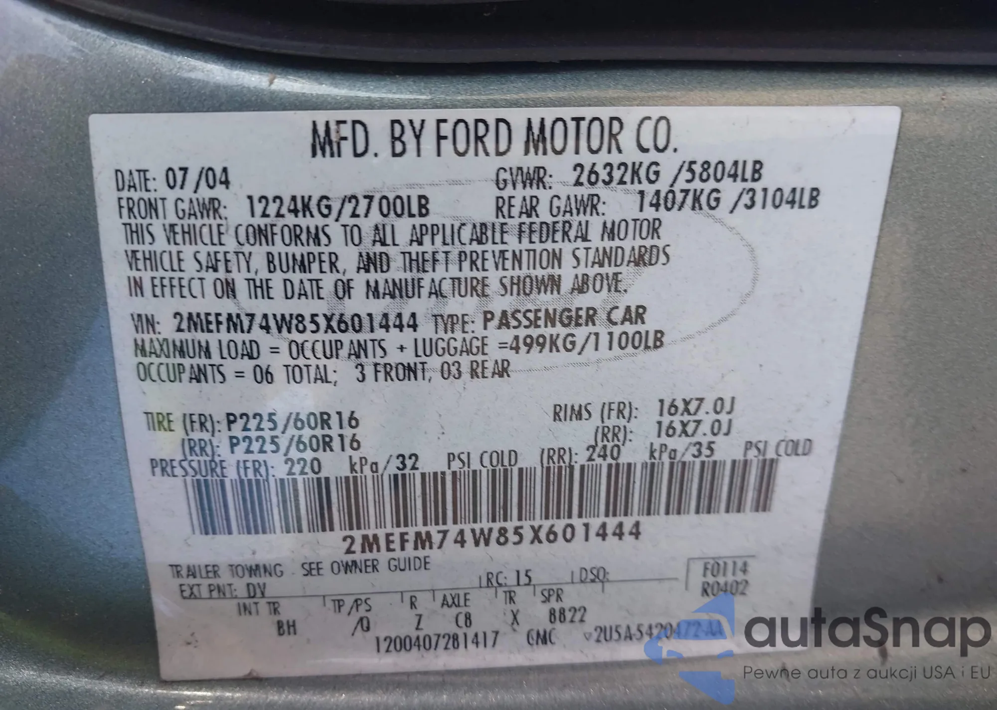 • VIN: 2MEFM74W85X601444