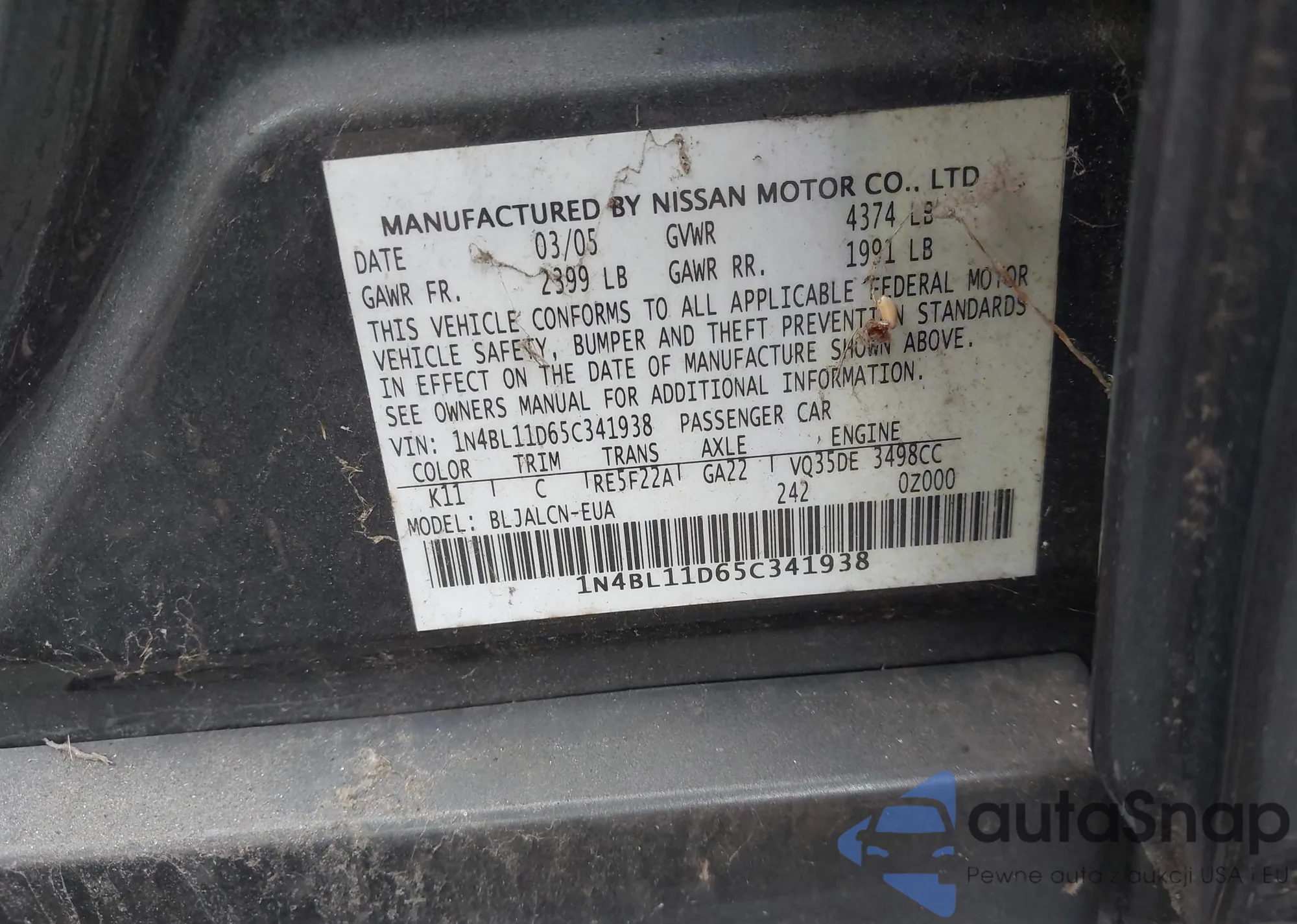 VIN: 1N4BL11D65C341938