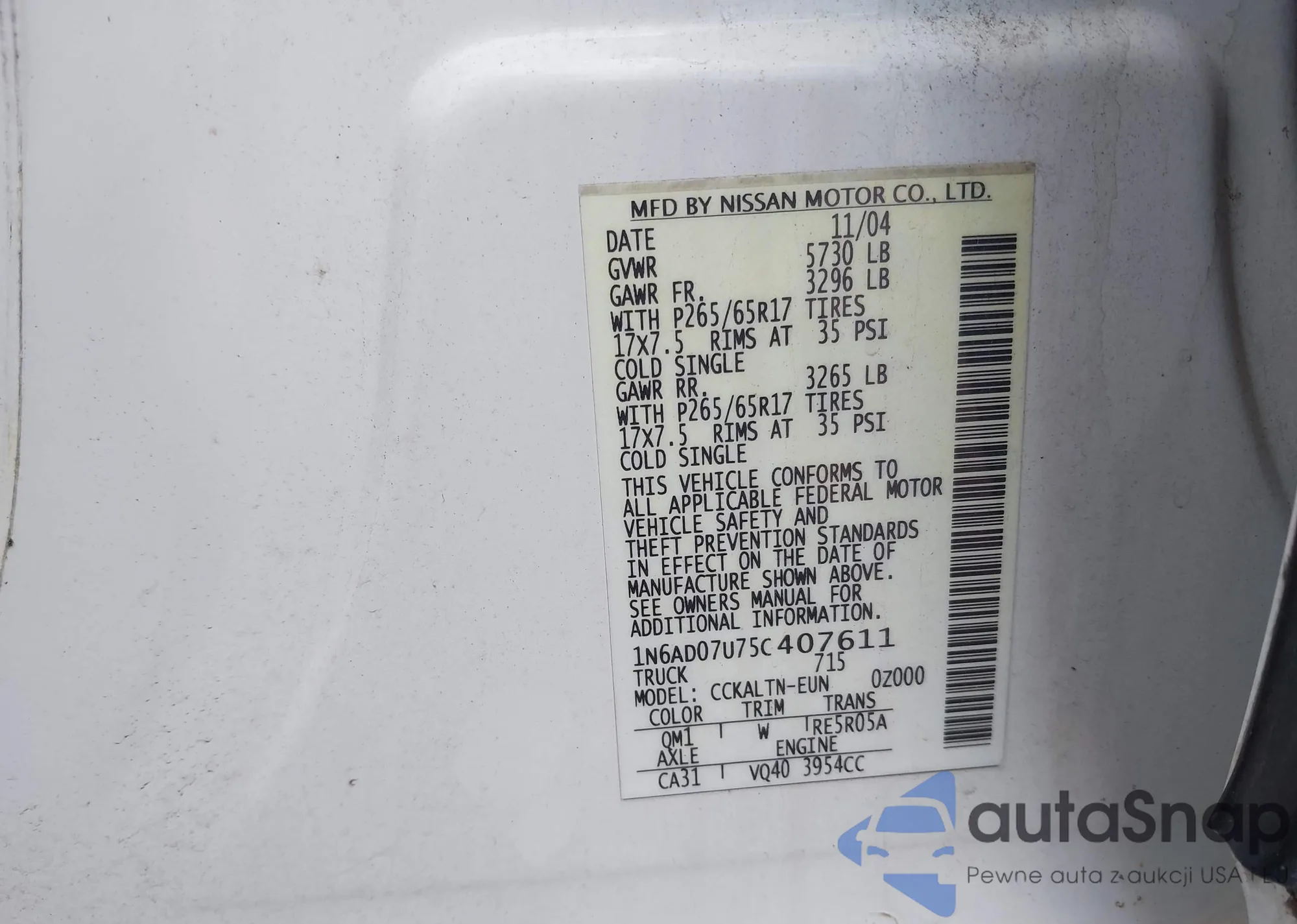 VIN: 1N6AD07U75C407611
