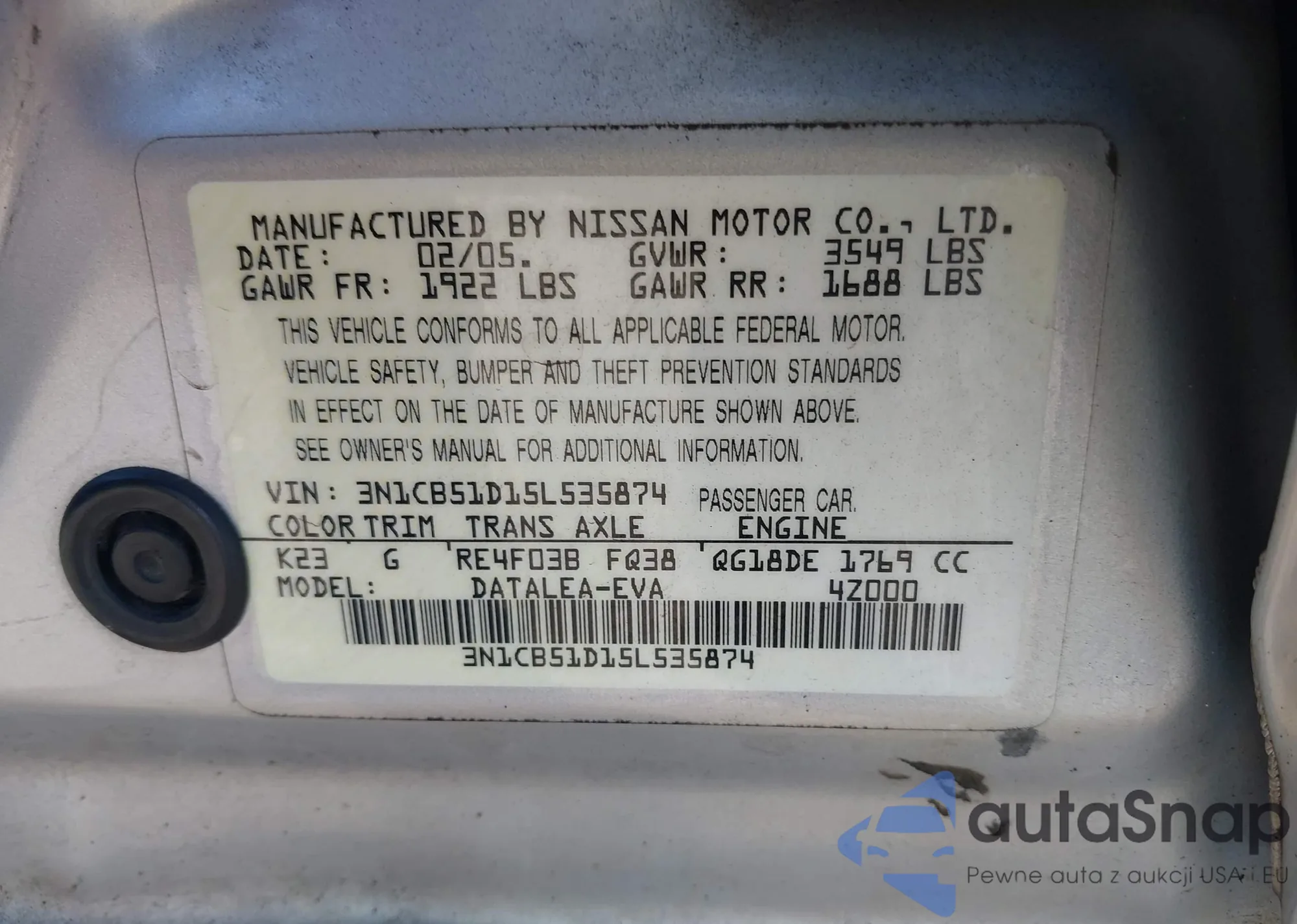 VIN: 3N1CB51D15L535874
