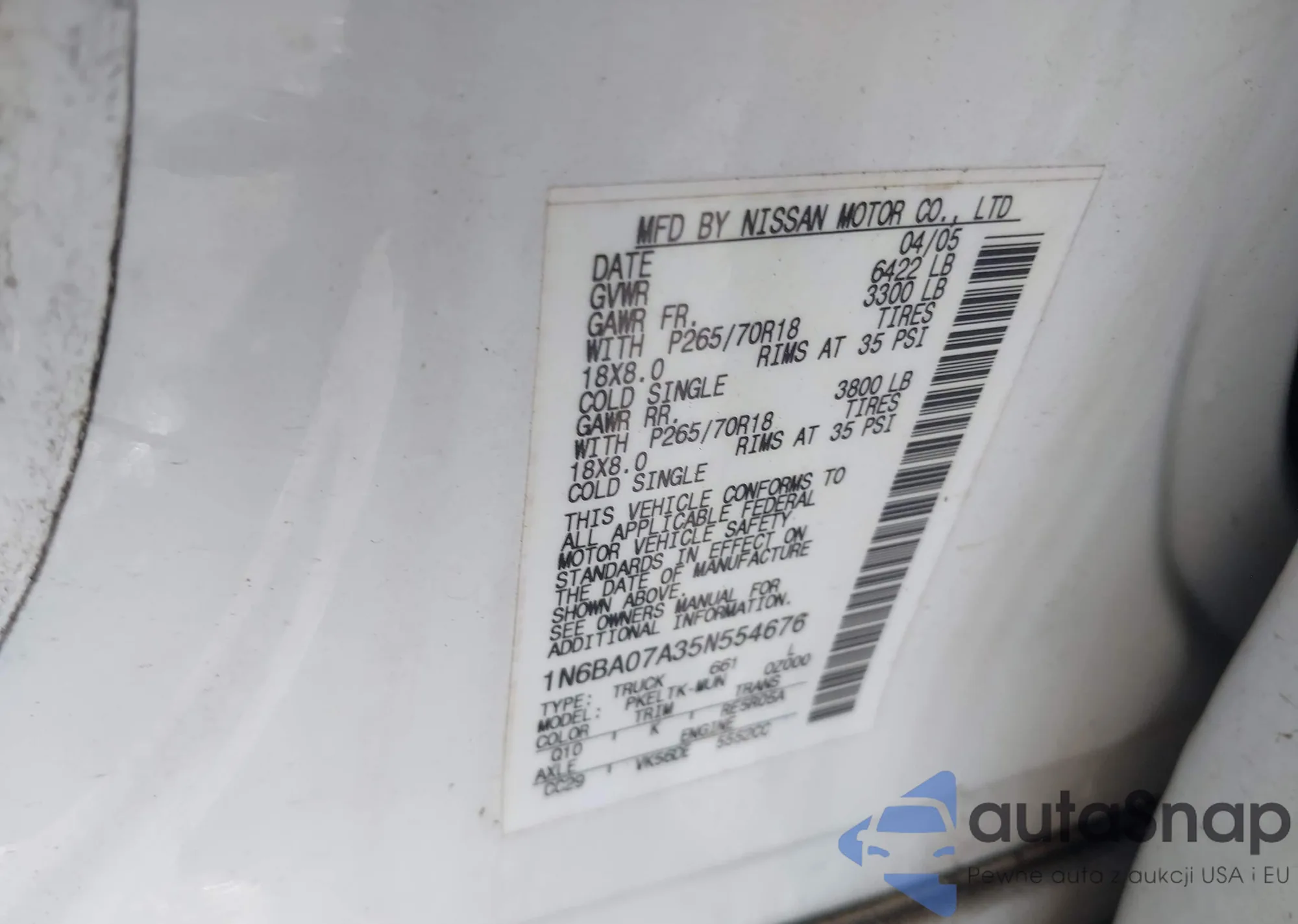 VIN: 1N6BA07A35N554676