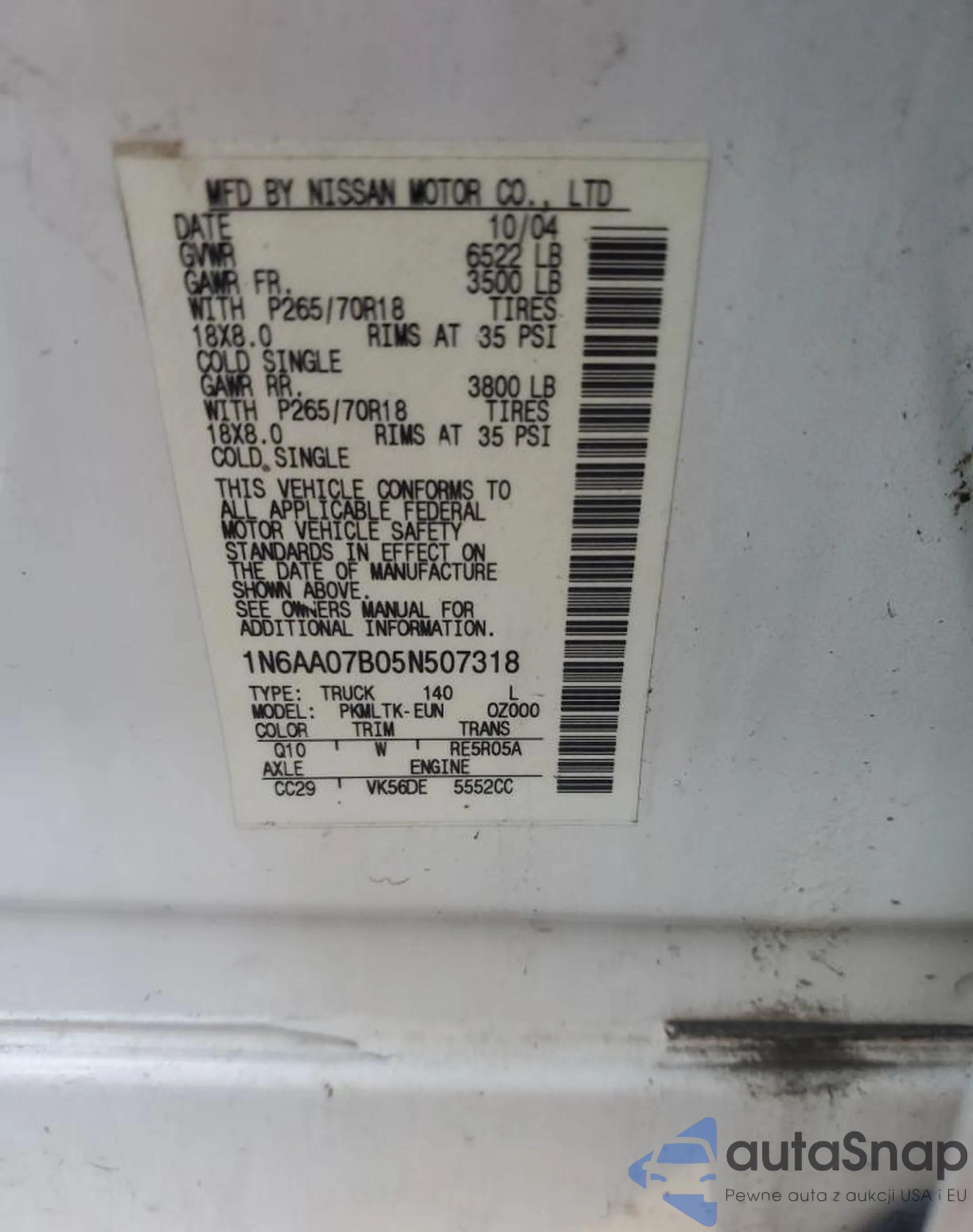 VIN: 1N6AA07B05N507318