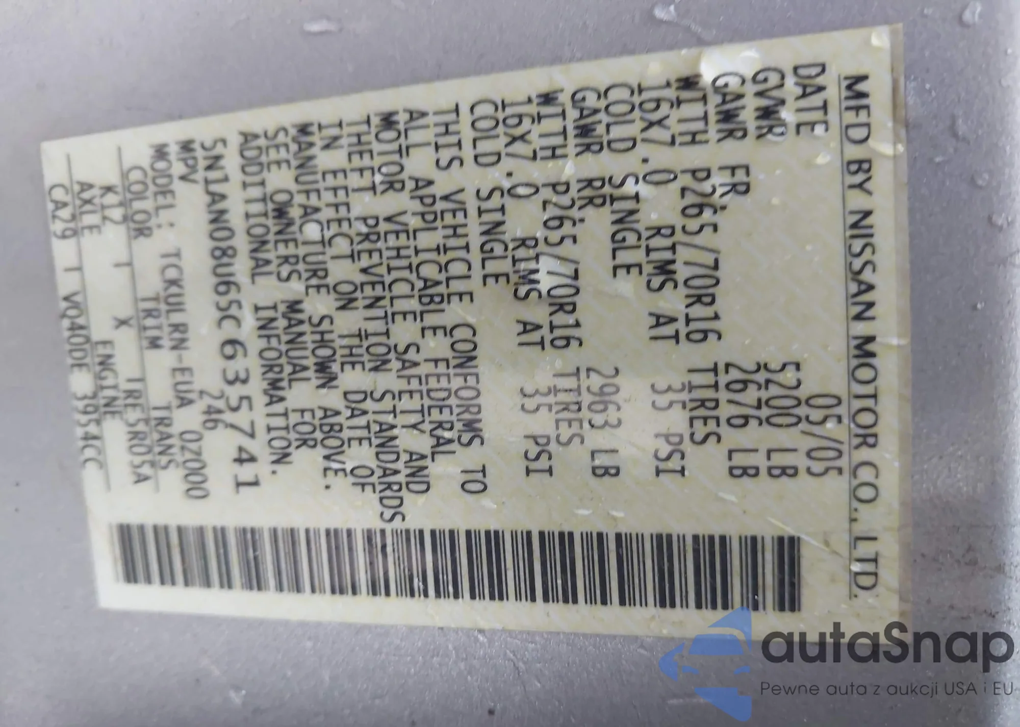 VIN: 5N1AN08U65C635741