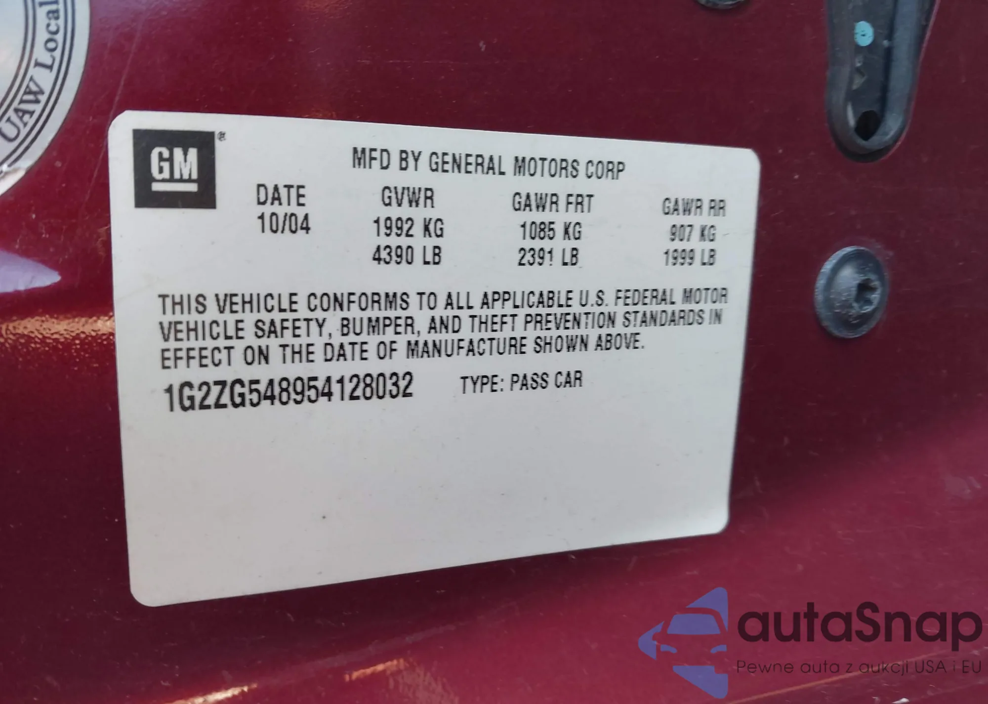 • VIN: 1G2ZG548954128032