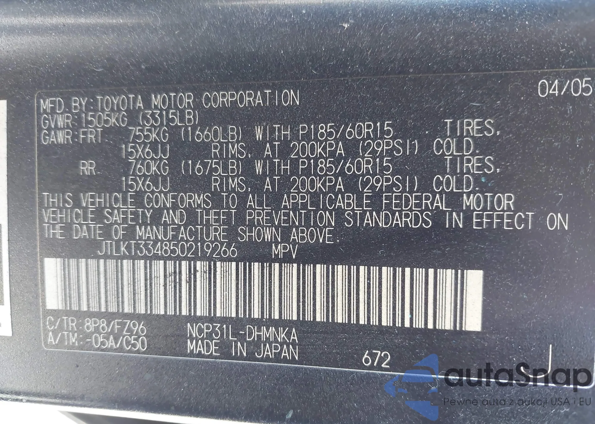 VIN: JTLKT334850219266