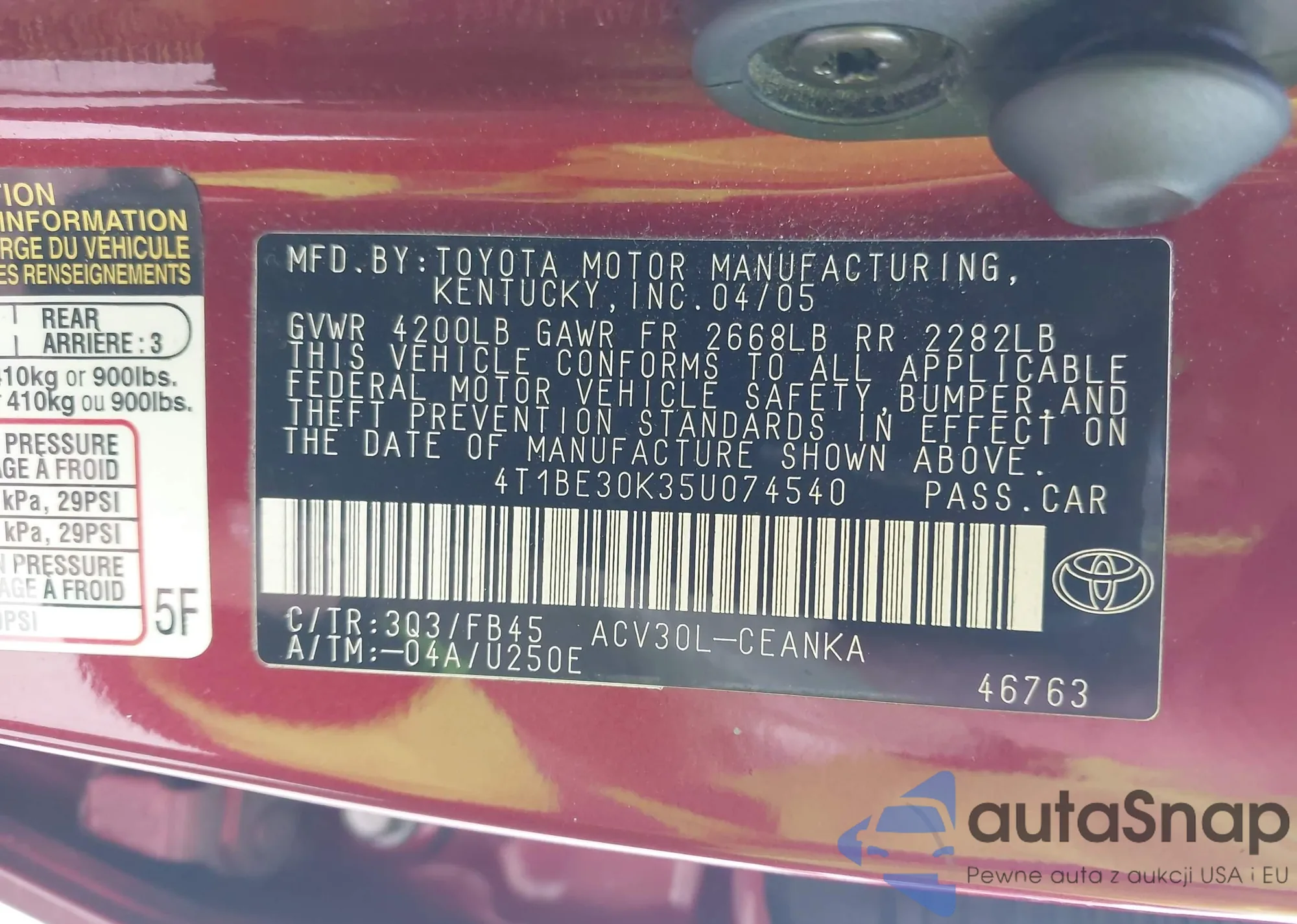 VIN: 4T1BE30K35U074540