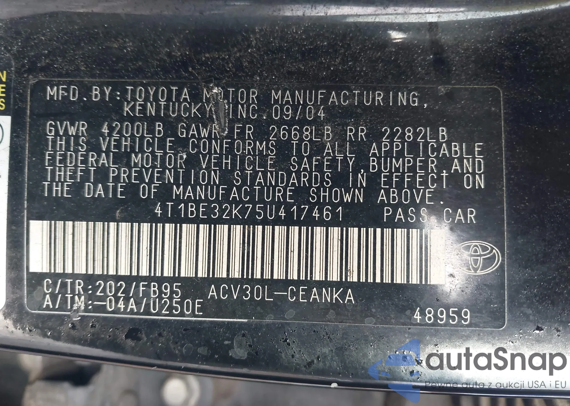 The car Toyota Camry 2005 (VIN 4T1BE32K75U417461) is sold by an unverified seller. We recommend checking the Carfax report and confirming registration possibilities before purchase.
