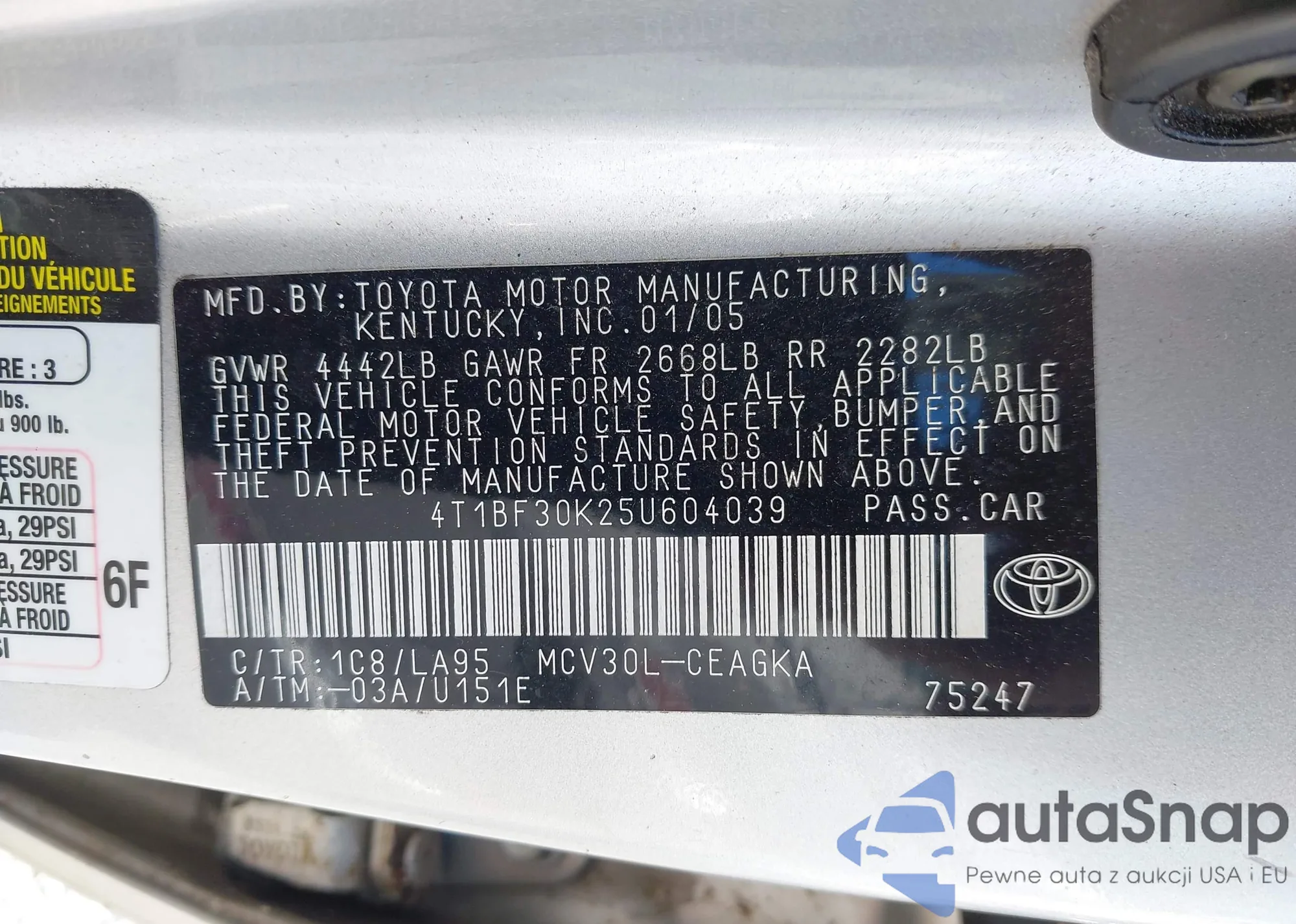 VIN: 4T1BF30K25U604039