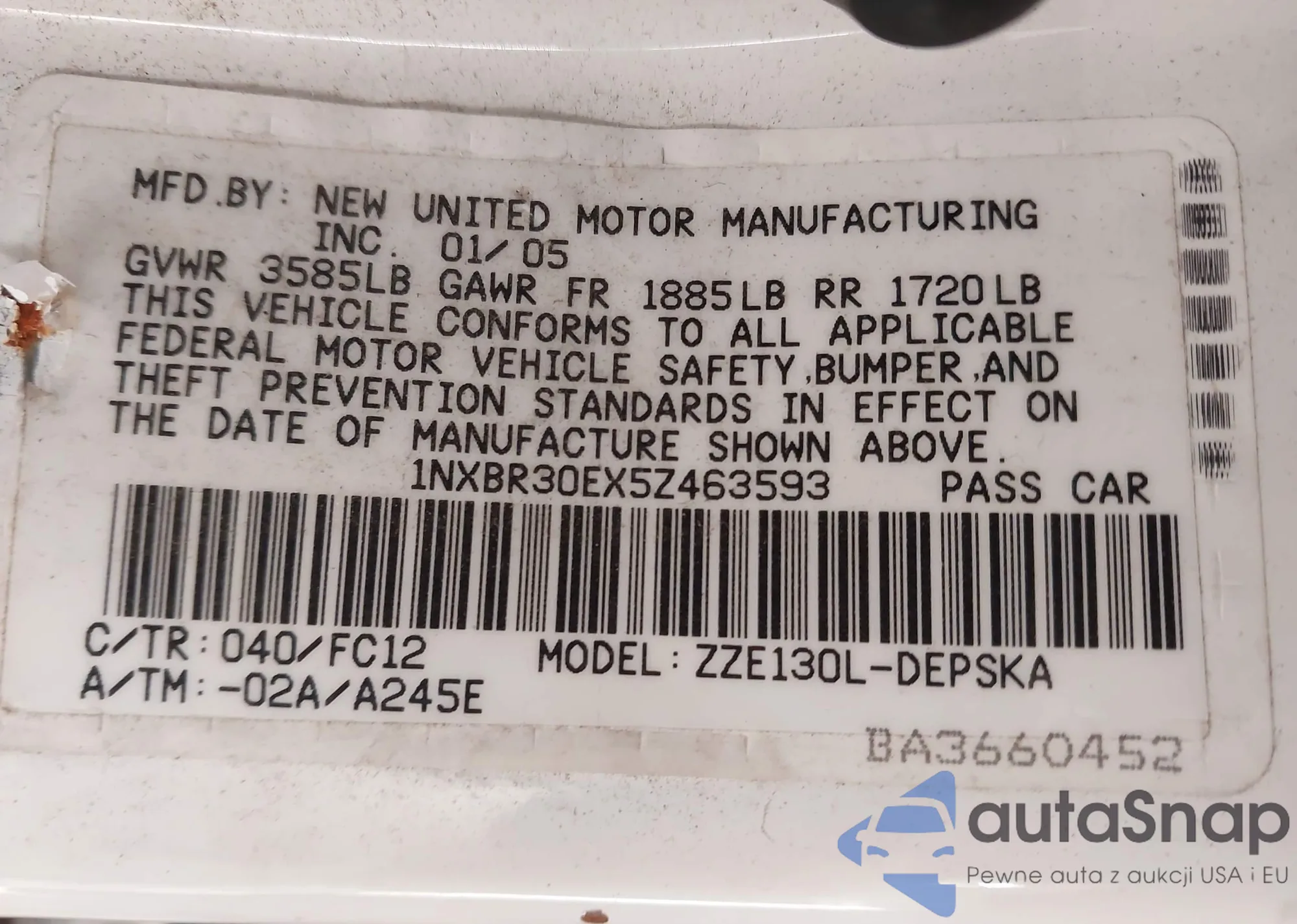 VIN: 1NXBR30EX5Z463593
