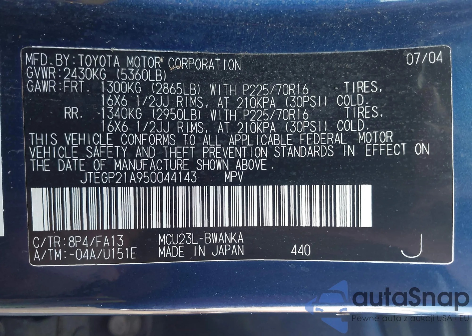 JTEGP21A950044143 IAAI