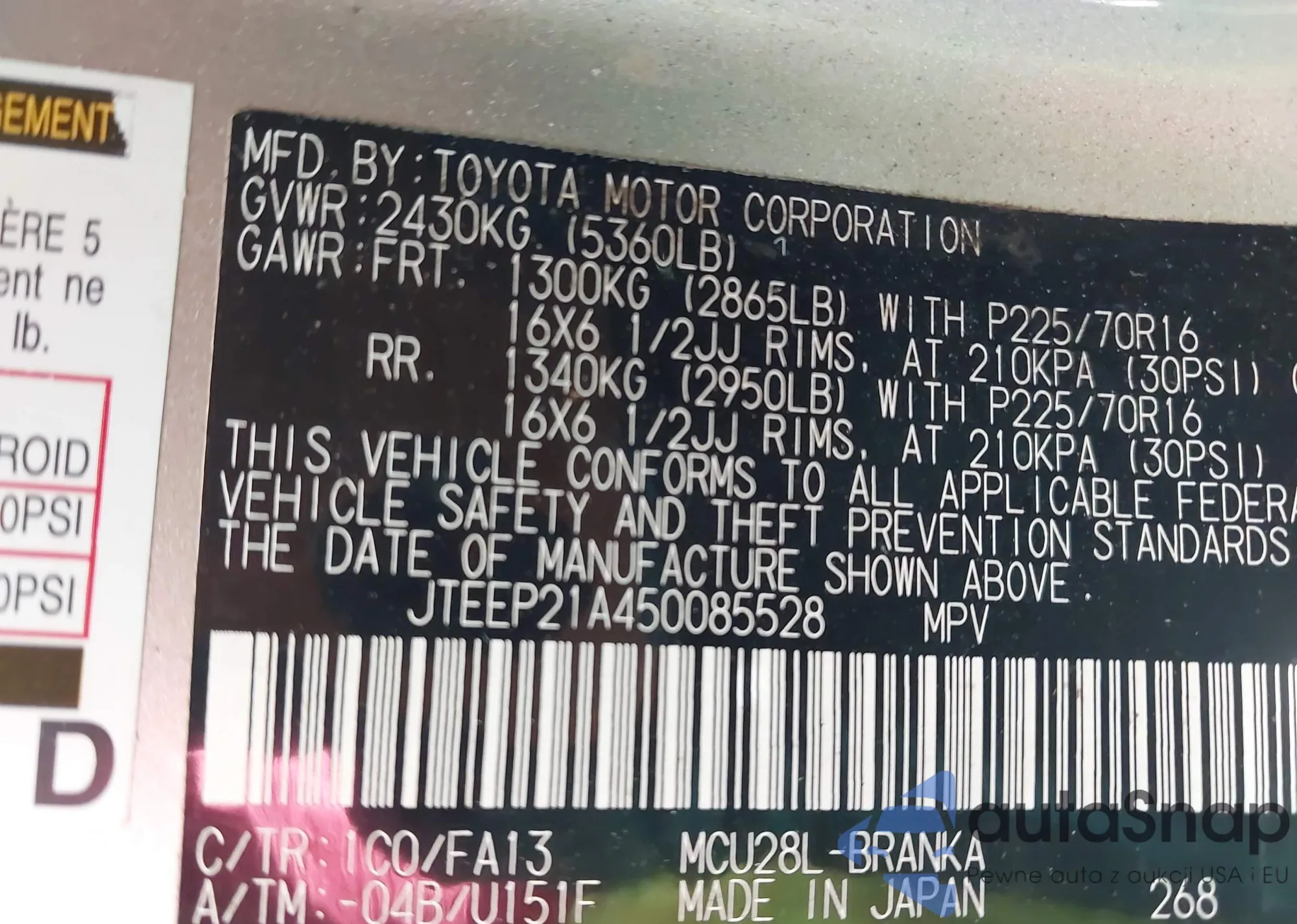 VIN: JTEEP21A450085528