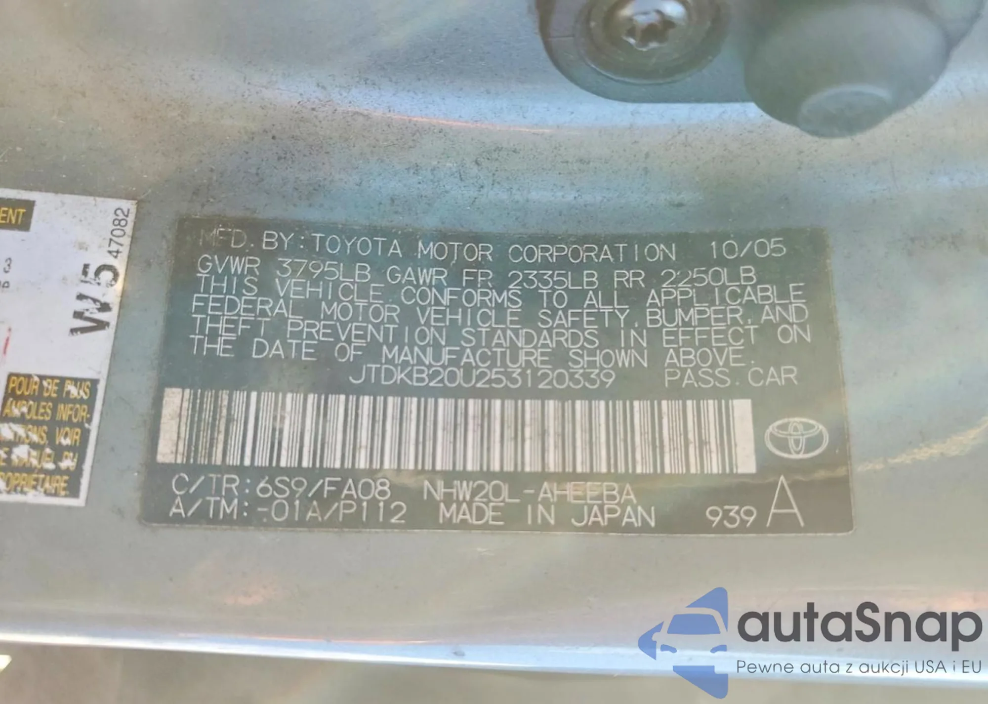 The car Toyota Prius 2005 (VIN JTDKB20U253120339) is sold by an unverified seller. We recommend checking the Carfax report and confirming registration possibilities before purchase.