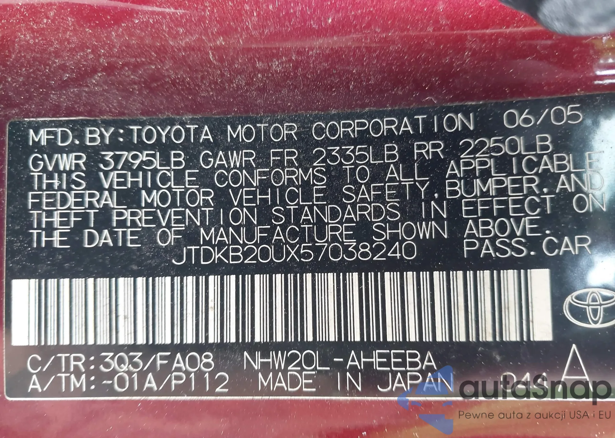 VIN: JTDKB20UX57038240