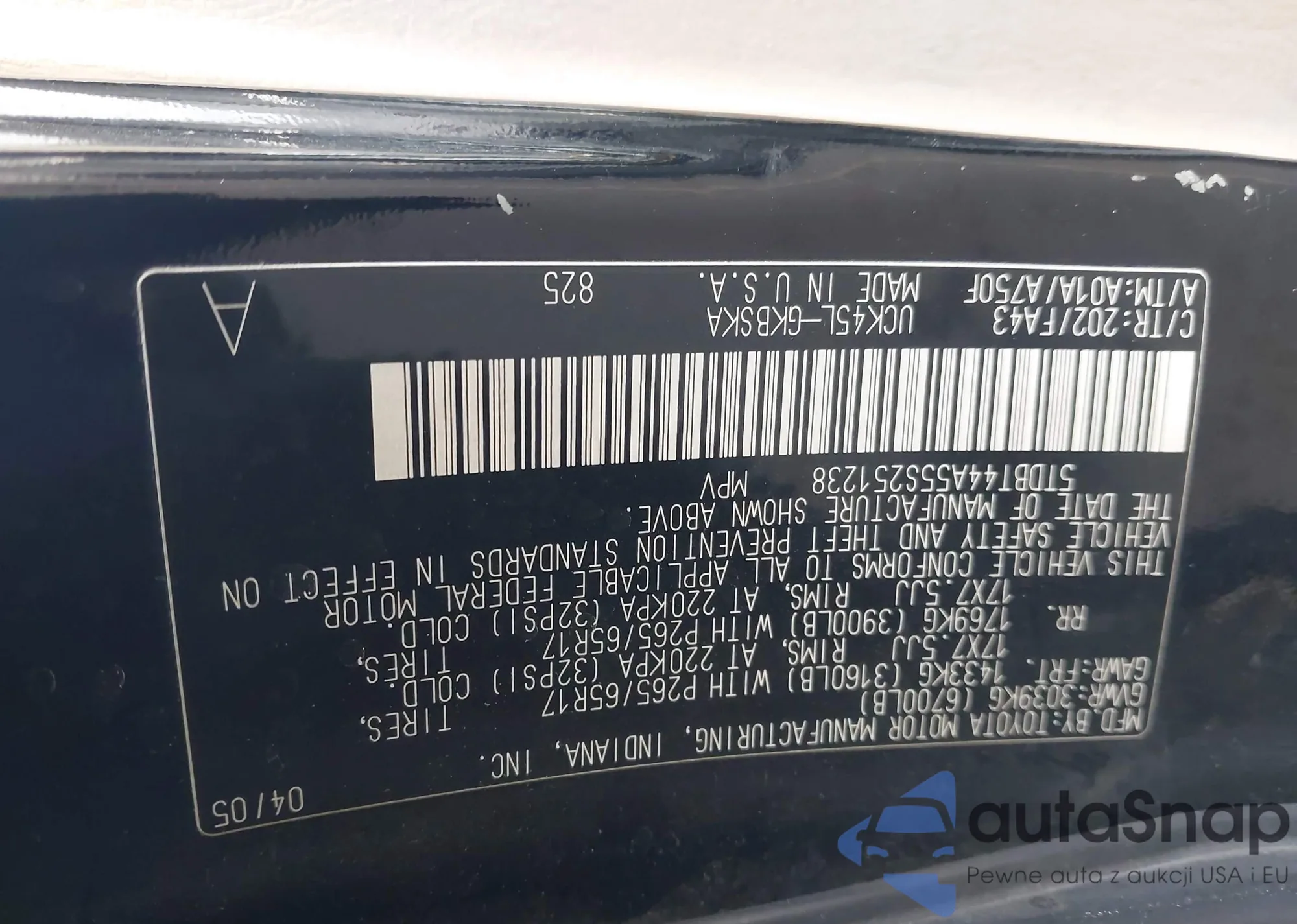 VIN: 5TDBT44A55S251238