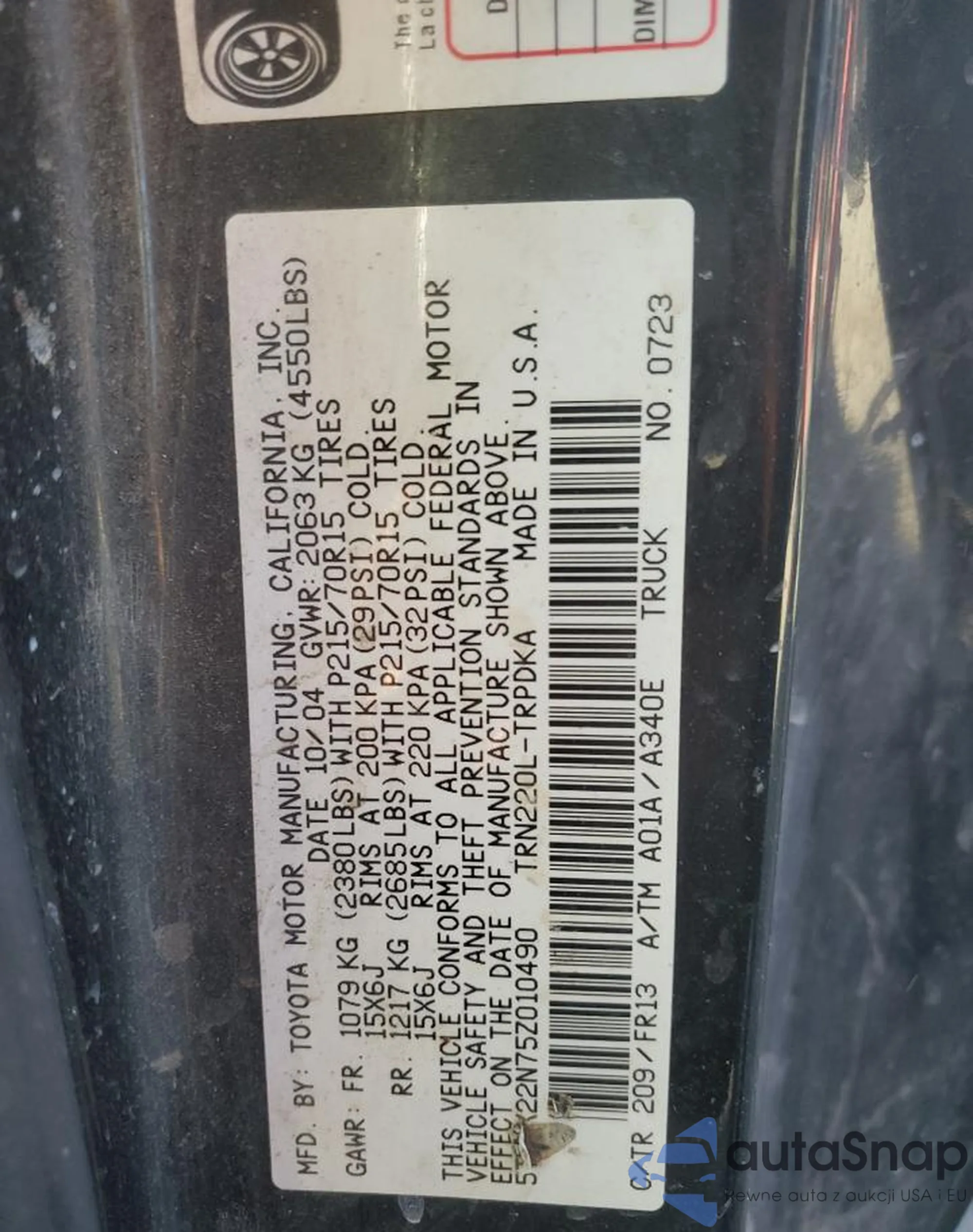 VIN: 5TENX22N75Z010490