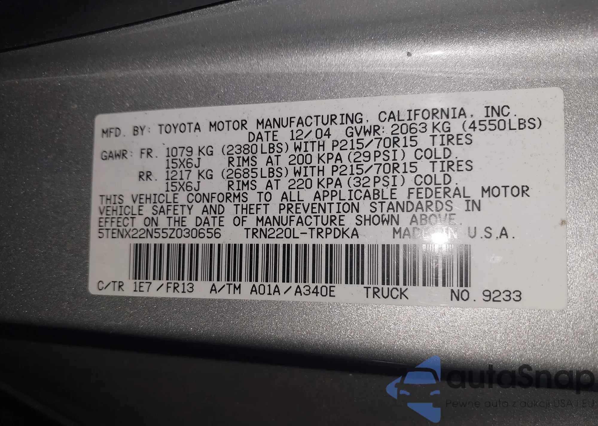 VIN: 5TENX22N55Z030656