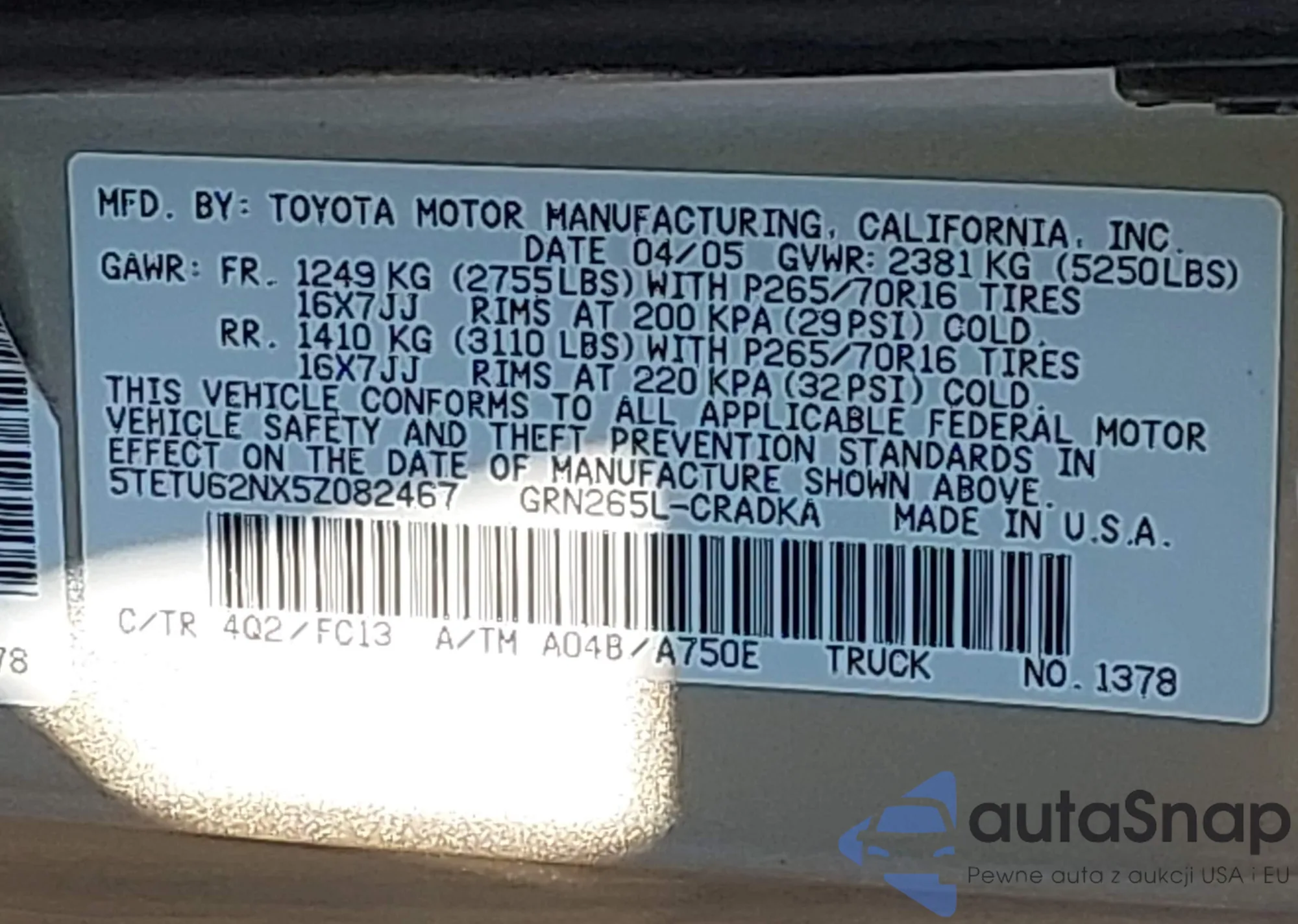 VIN: 5TETU62NX5Z082467