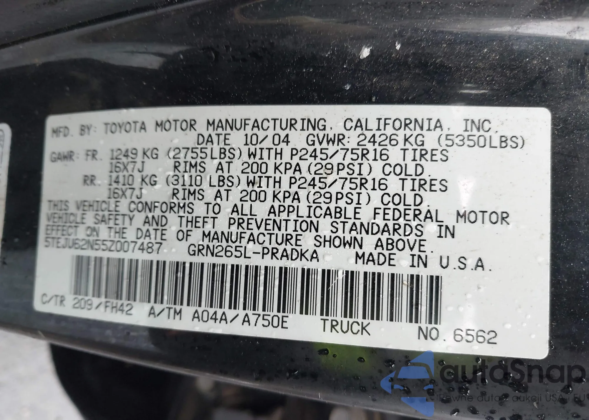 VIN: 5TEJU62N55Z007487