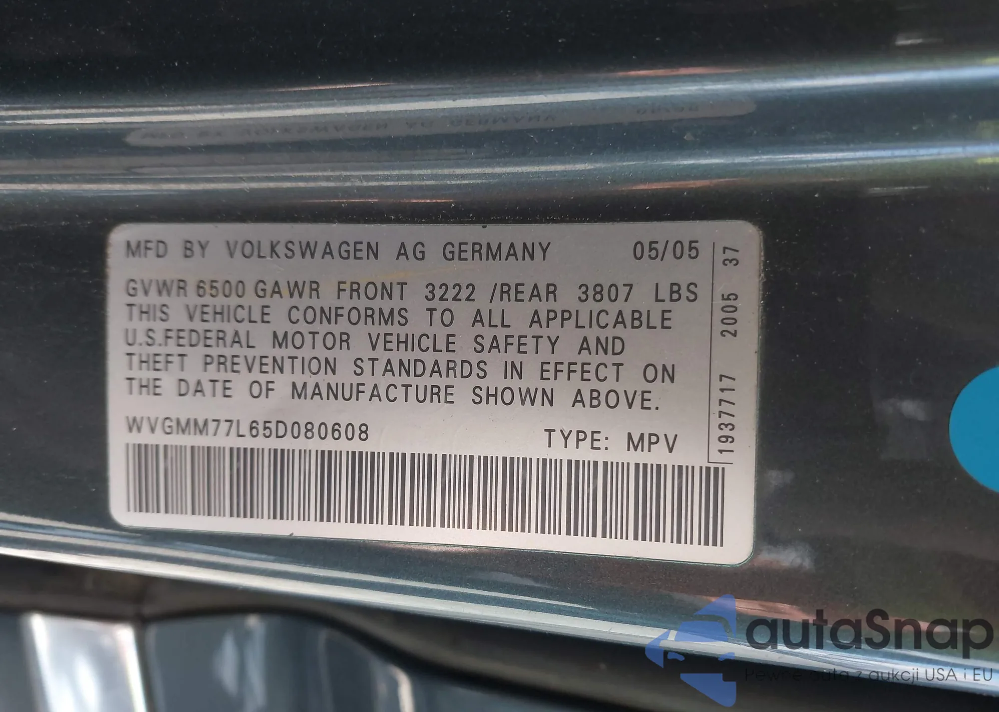 VIN: WVGMM77L65D080608